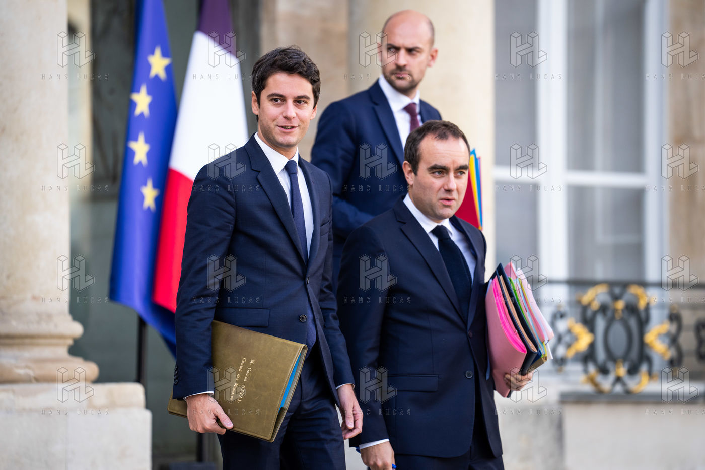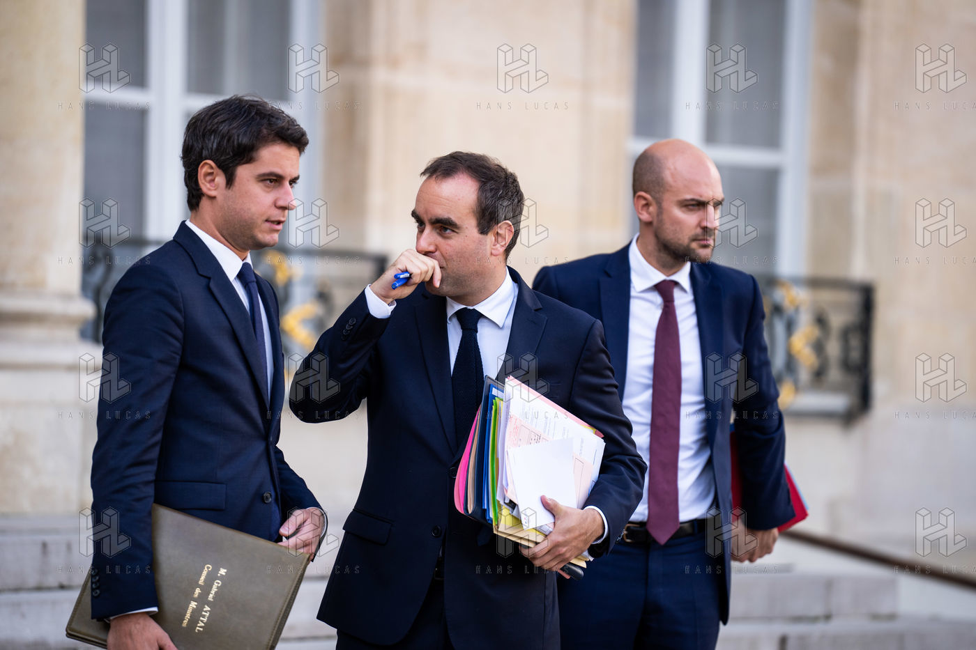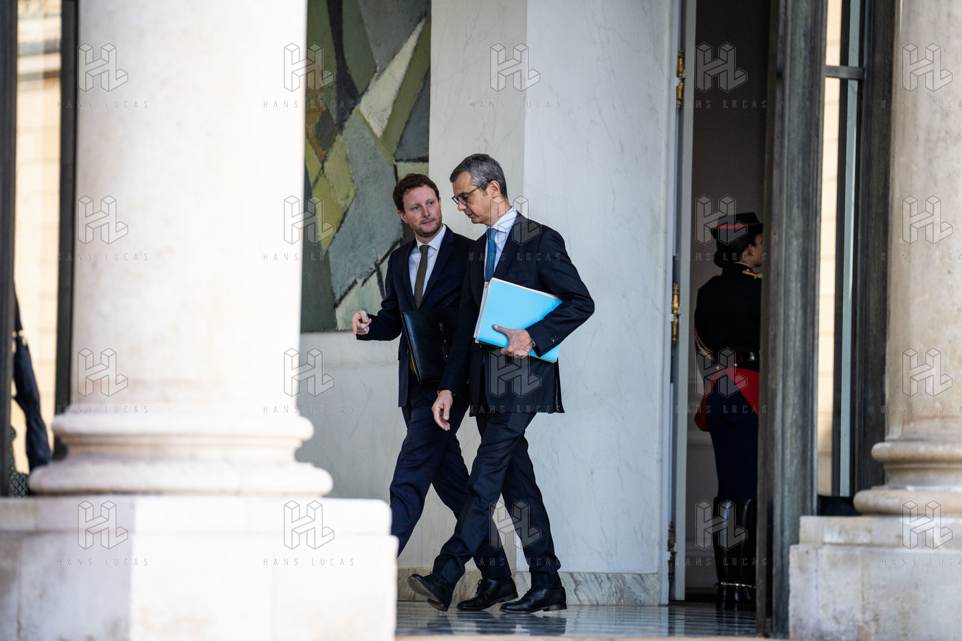 SORTIE DU CONSEIL DES MINISTRES AU PALAIS DE L'ELYSÉE, 19 OCTOBRE
