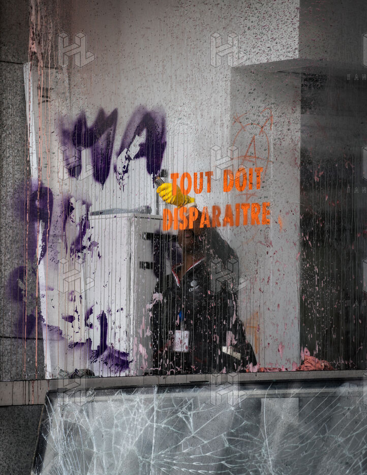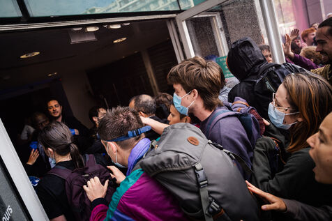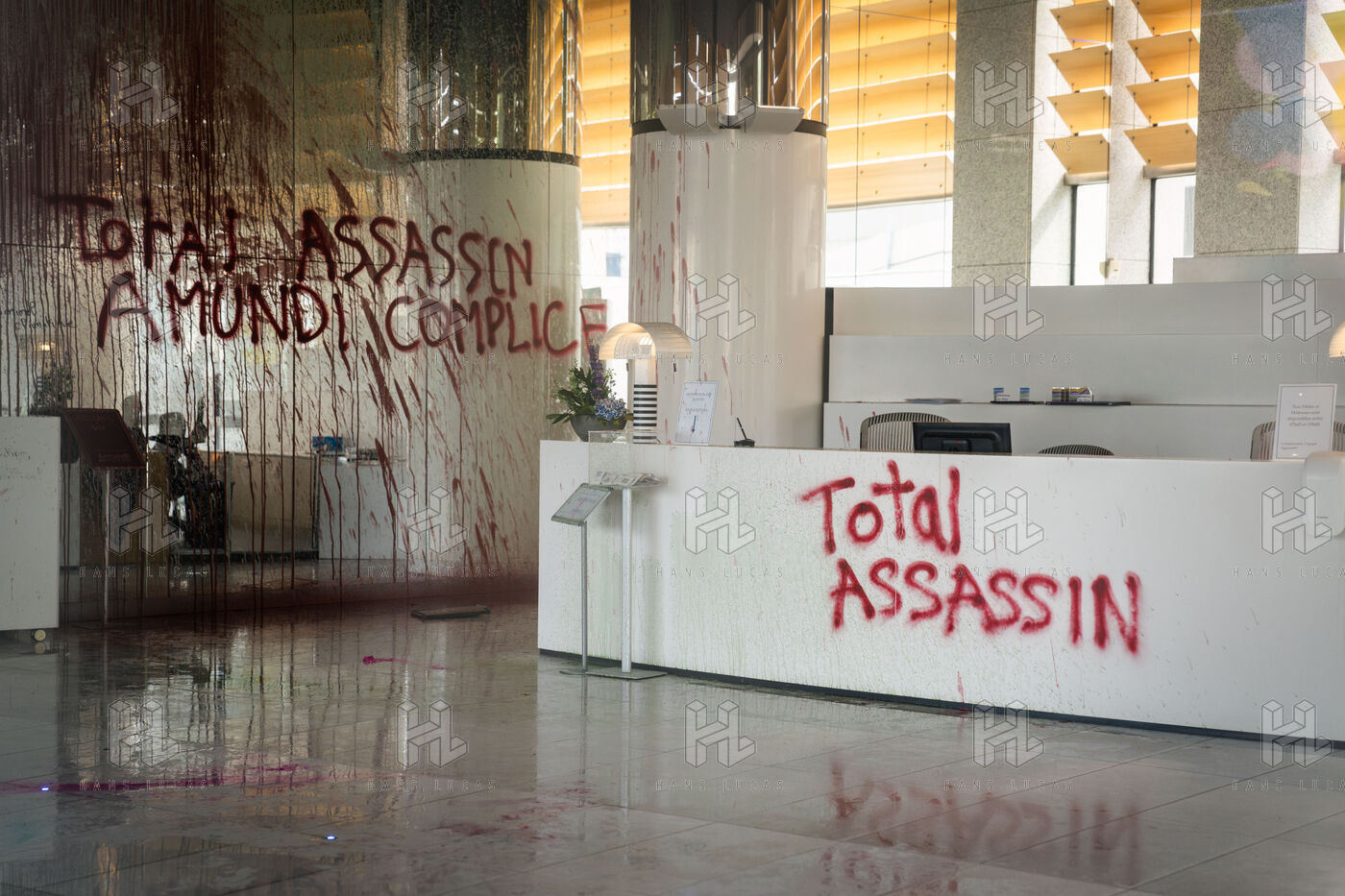 Total liquidation, everything must go in Paris. Rally to occupy the offices of Amundi, Europe's leading asset manager and fourth-largest shareholder in TotalEnergies, in Paris.