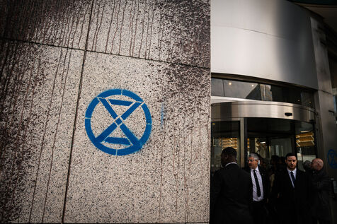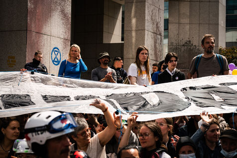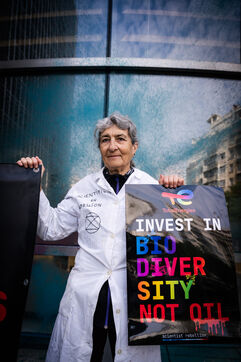 Manifestation organisée par les pacifistes écologistes d'Extinction Rebellion, XR, pour protester contre l'assemblée générale de TotalEnergies.