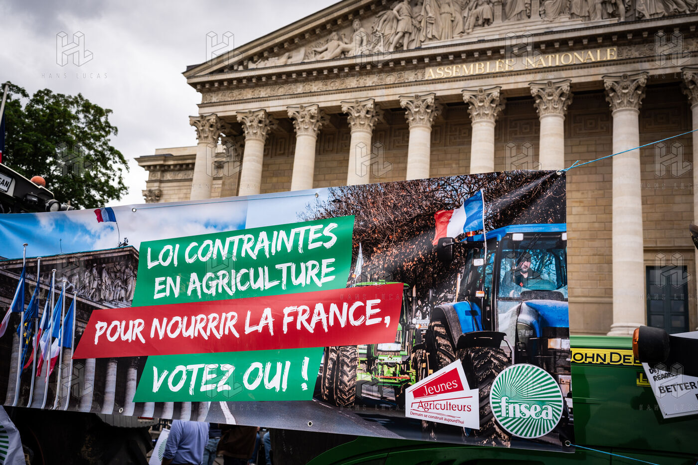 Manifestation d'agriculteurs devant l'Assemblée nationale à Paris.