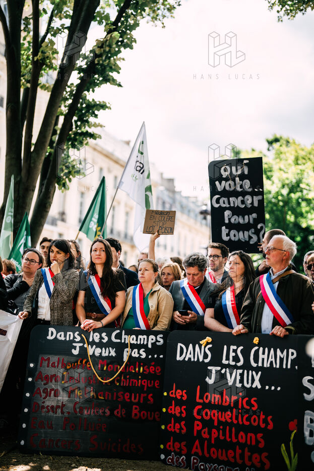 Environmental protest against the Dupomb law, citizens denounce the dangers of pesticides to health and biodiversity.