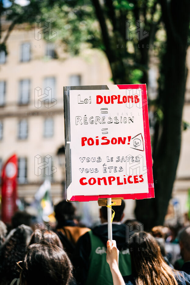 Manifestation écologiste contre la loi Dupomb, des citoyens dénoncent les dangers des pesticides pour la santé et la biodiversité.
