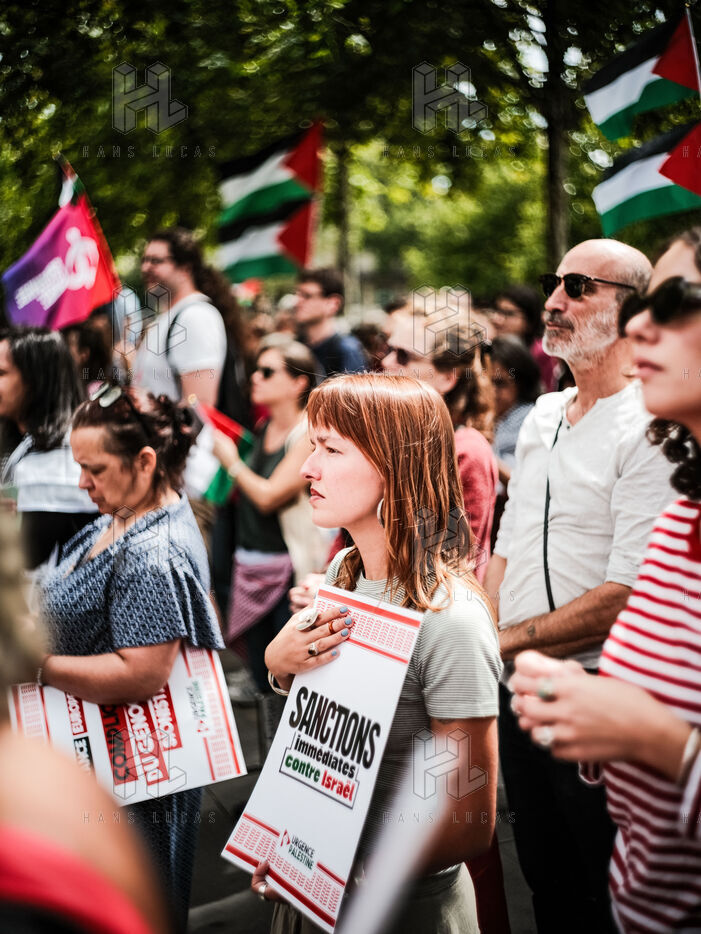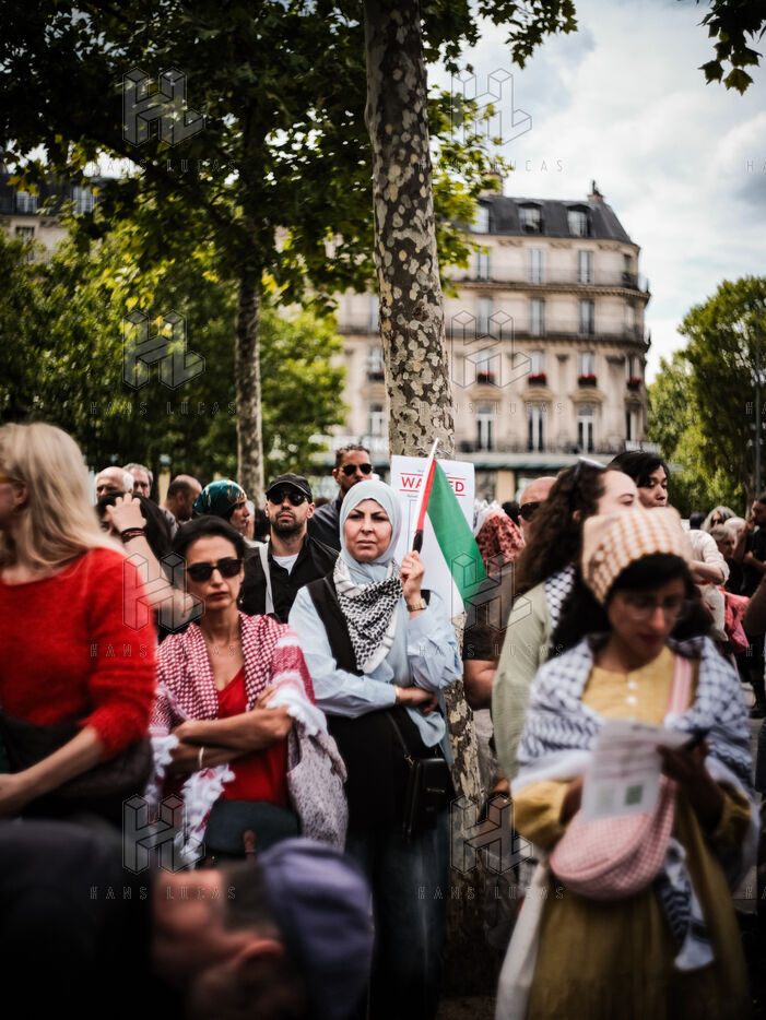 Demonstration in support of Palestine and denunciation of the genocide in Gaza, organized in Paris to demand an immediate ceasefire, the lifting of the blockade and sanctions against Israel.