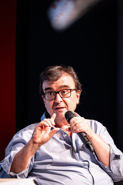 Rencontre entre le nonce apostolique, Monseñor Celestino Migliore et Javier Cercas, auteur du « Le fou de Dieu au bout du monde » sur le pape François, à l'institute Cervantes de Paris.