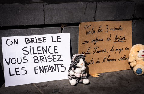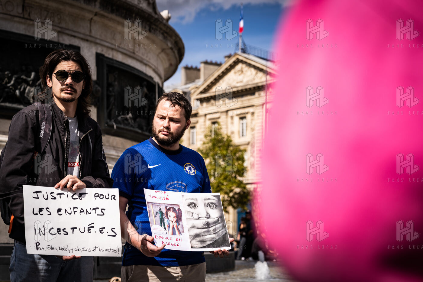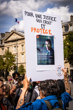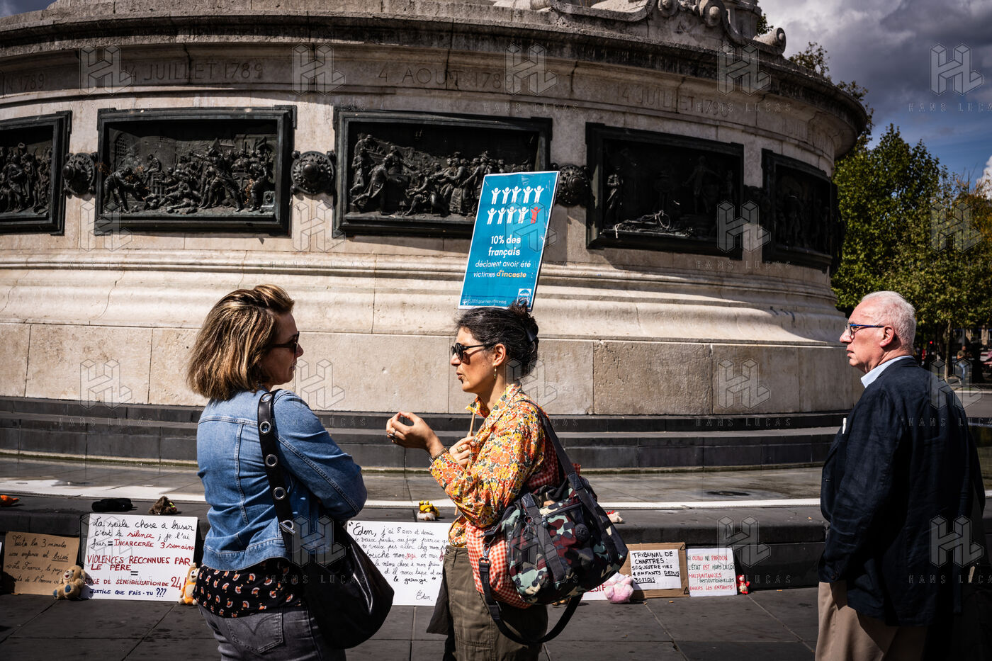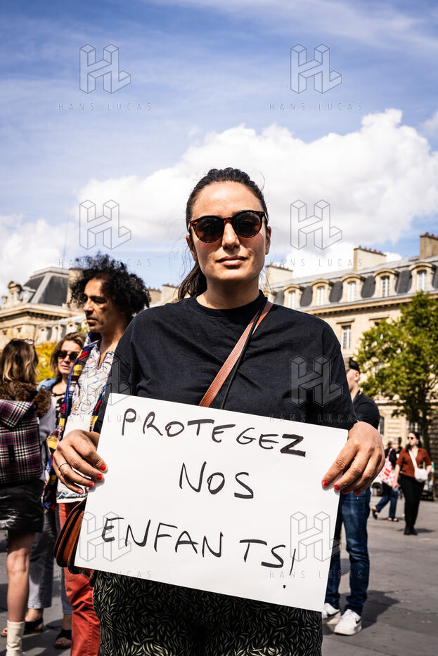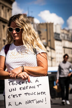 Manifestation des mères protectrices contre les décisions judiciaires relatives à la garde des enfants, à l'inceste et aux violences physiques et sexuelles contre les mineurs, sur la place de la République.