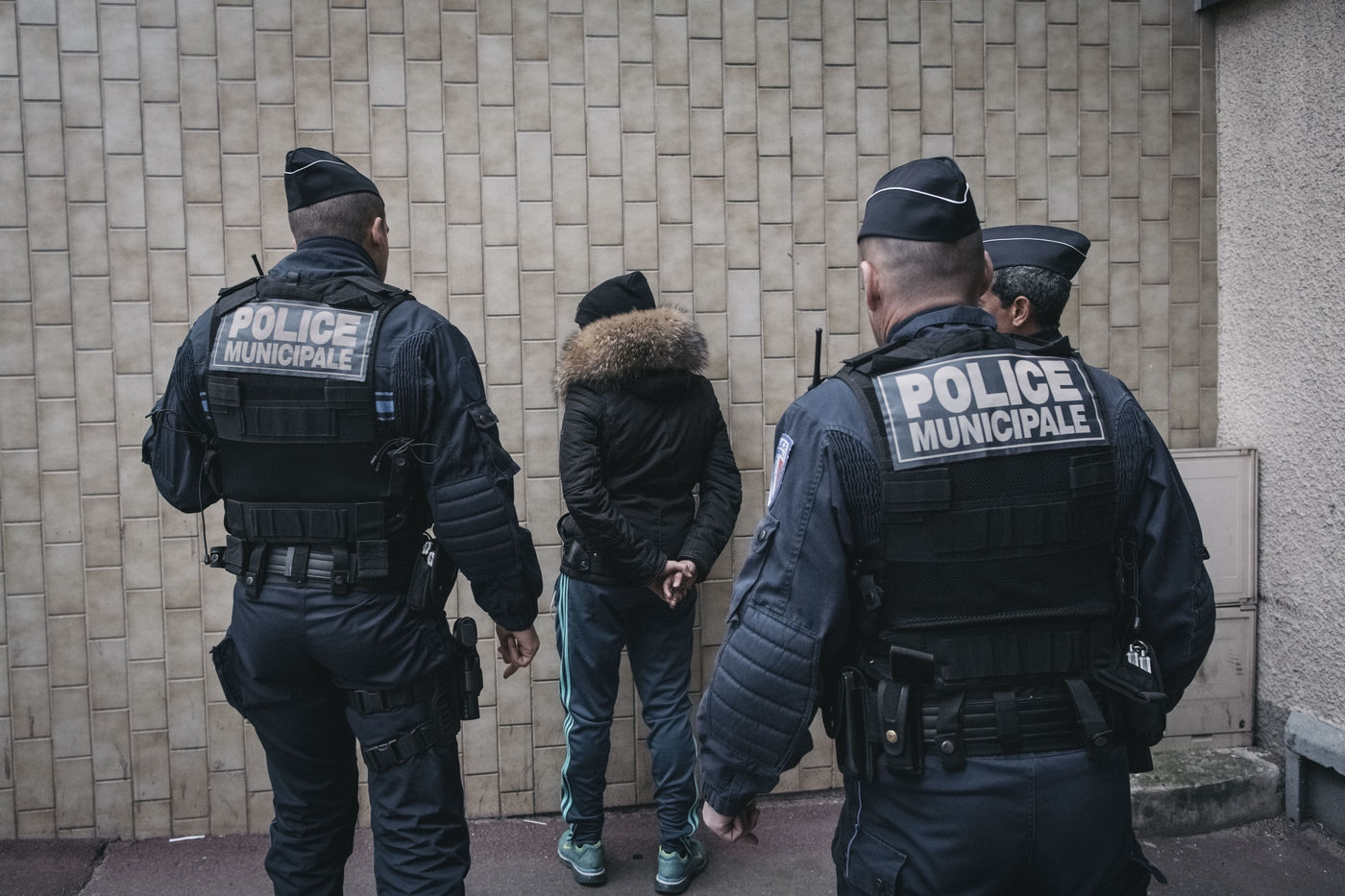 Colombes, France, 01 décembre 2015. La Police municipale de Colombes. Maraude avec les agents de police municipale nouvellement armées.
