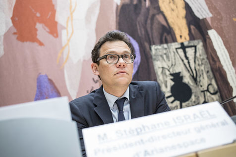 2015/05/12. France. Paris. Assemblee Nationale. Commission des Affaires economiques. Audition de Stephane Israel, president directeur general de Arianespace. Stephane Israel en presence de Francois Bottes president de la commission.