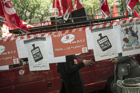 2015/05/28. PARIS . FRANCE Manifestation et greve du personnel des hopitaux de paris devant la direction de l ap-hp a Paris pour defendre les 35 heures