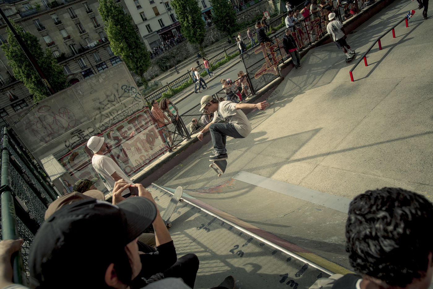 2015/06/21. SkatePark quai de Jemmapes a Paris. Plus qu un sport, un modede vie, le jour de la fete de la musique donne lieu a une competition de sport extreme dans le plus petit skatepark parisien.