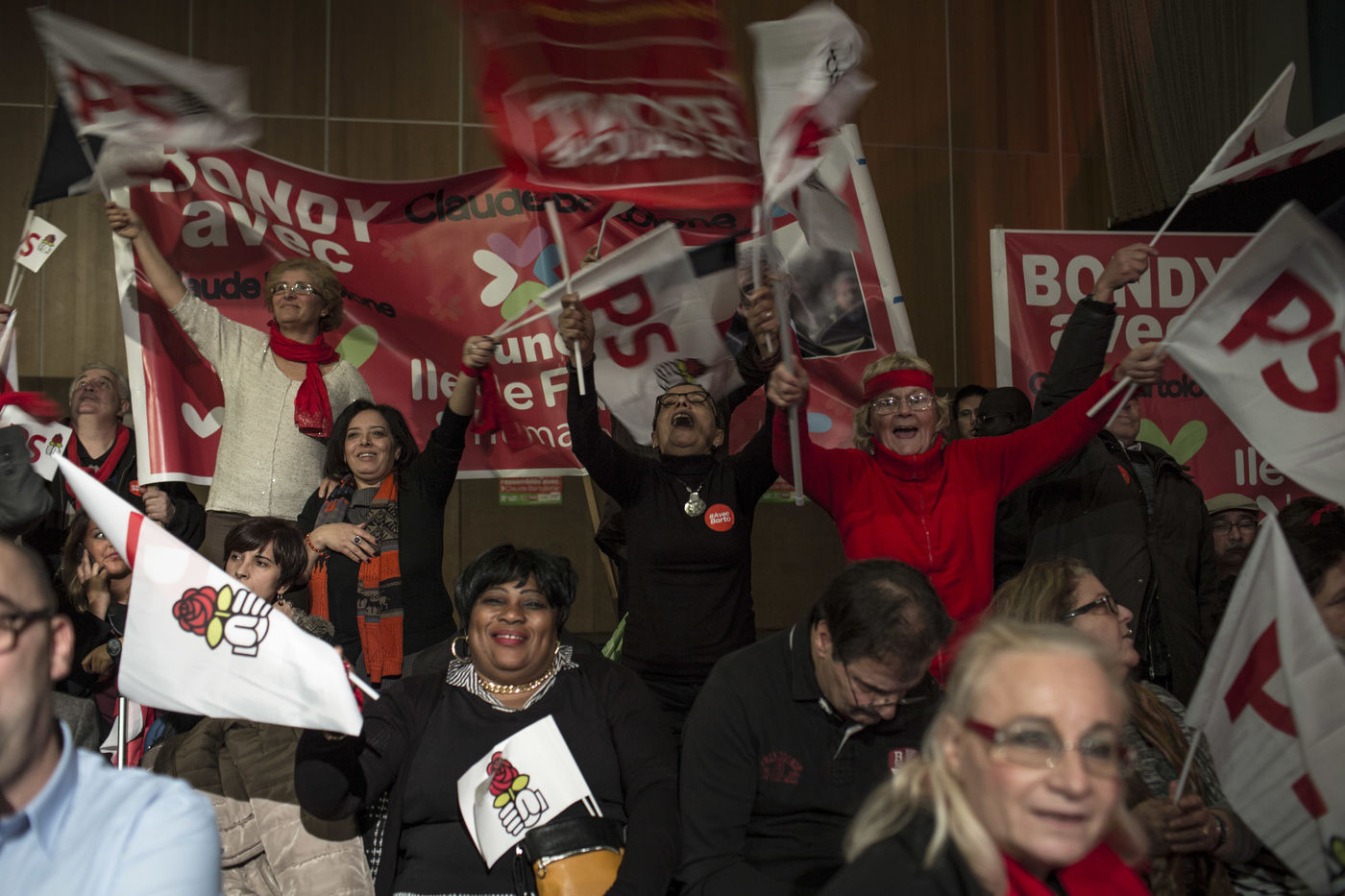 Creteil. France, le 09 décembre 2015. Meeting d'entre deux tours du rassemblement gauche et écologiste autour de la tête de liste pour l'Ile de France Claude Bartolone.