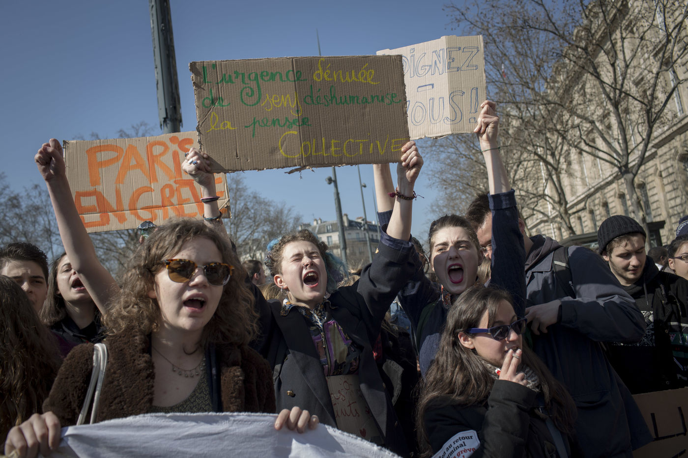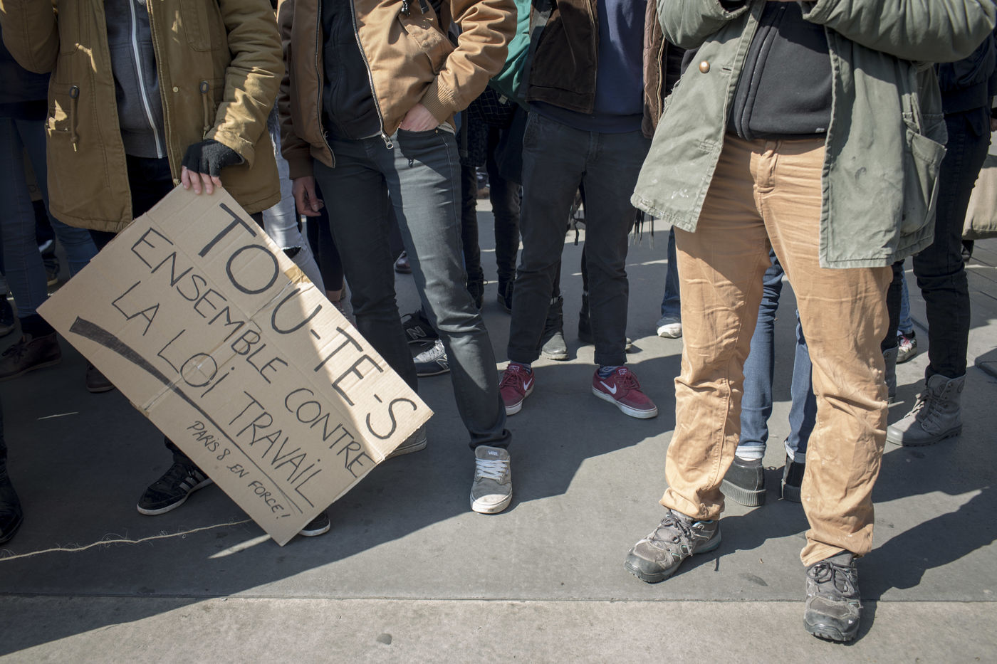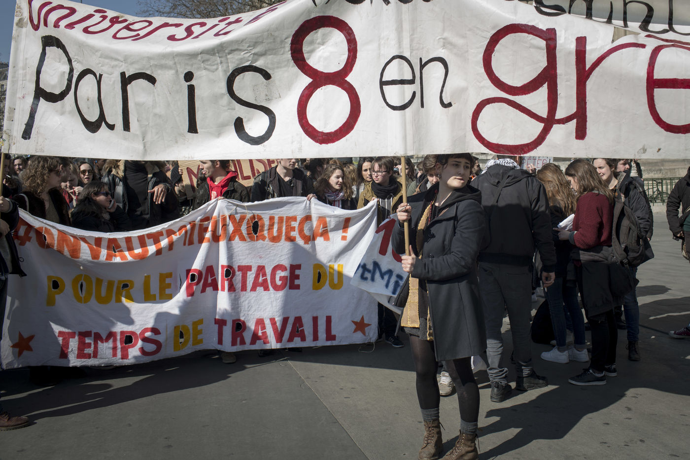 Paris. France. Le 17 mars 2016. De la Place de la République a la Place d'Italie. Journée nationale de mobilisation contre la loi travail avec une forte mobilisation des lycéens et étudiants.