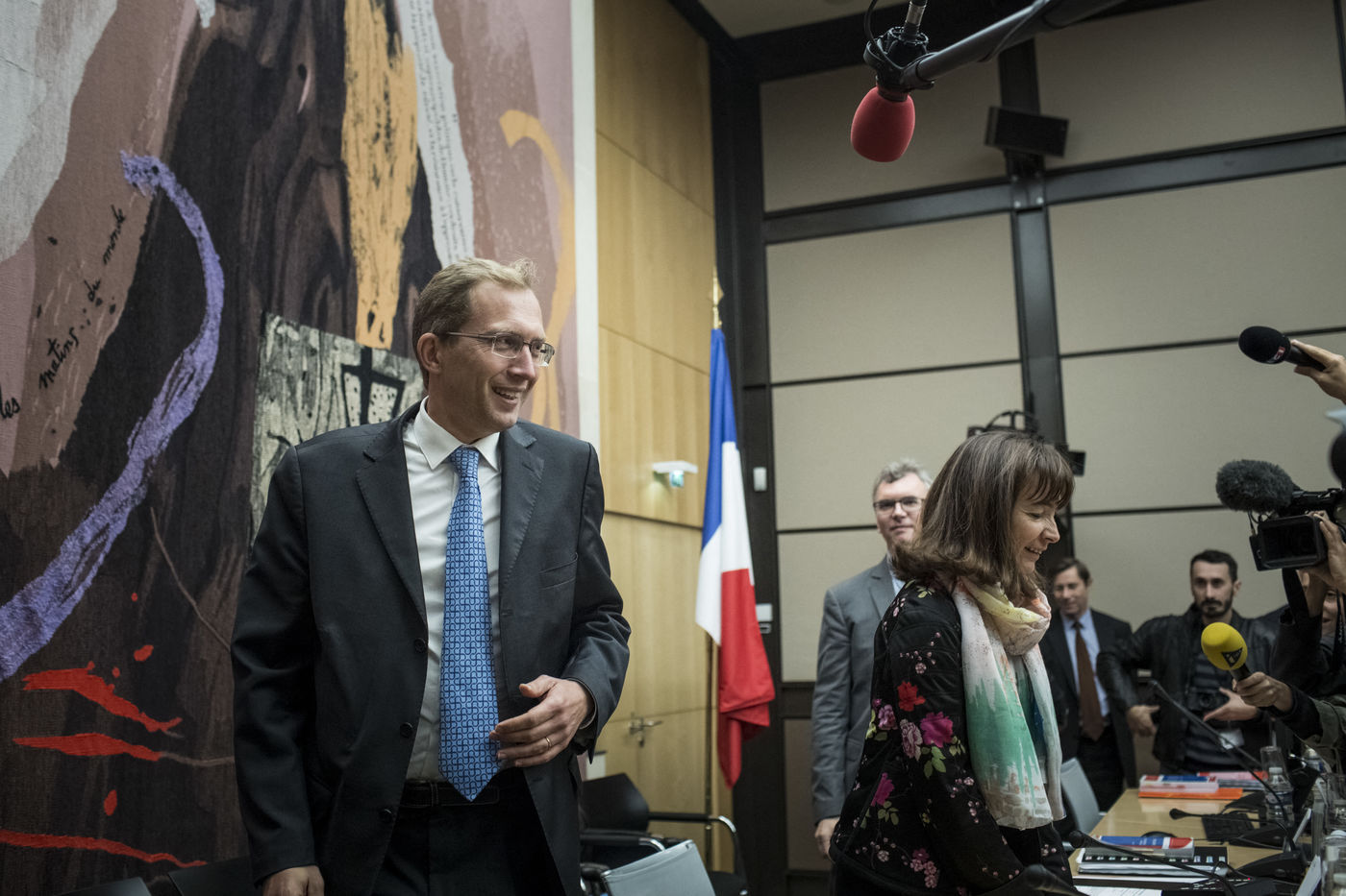Assemblee Nationale, Paris, France, 27 septembre 2016. Henri Poupart Lafarge, PDG Alstom, entendu par la Commission des affaires economiques, apres avoir annonce la fermeture de l usine Alstom de Belfort.