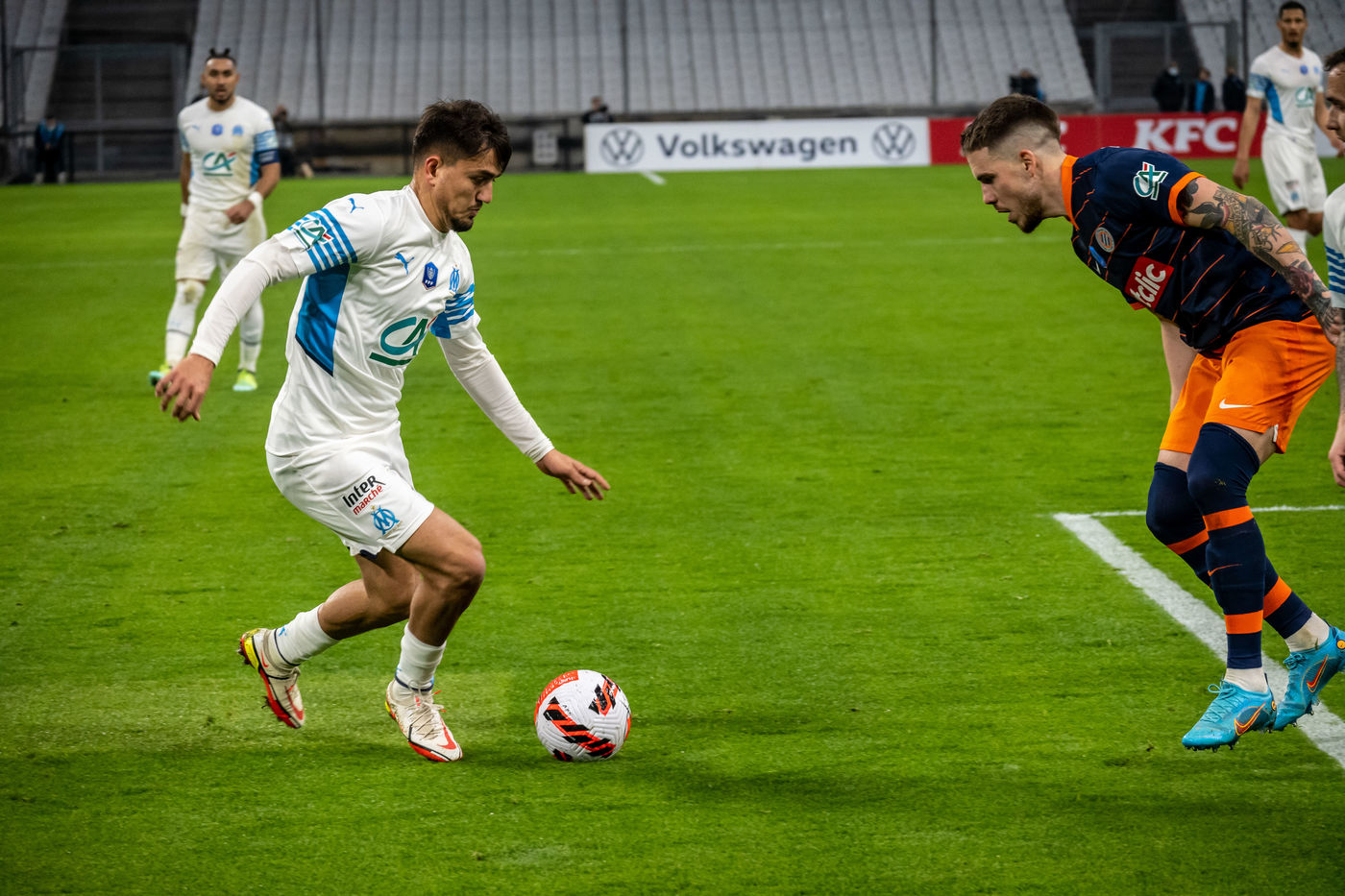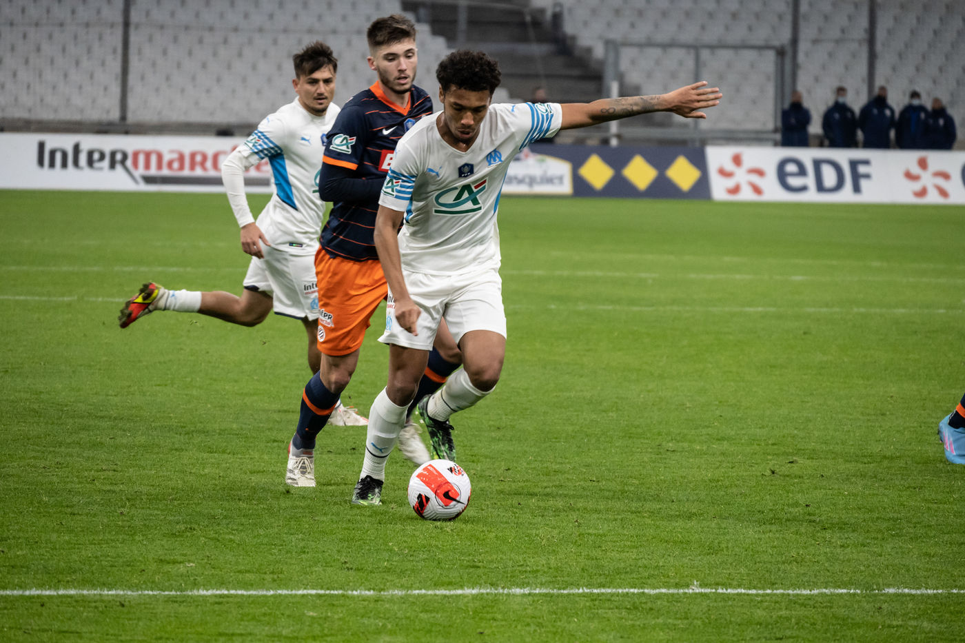 Olympique de Marseille won the penalty shootout after a score of 1-1 at the end of the 90 minutes. Thanks to this victory against Montpellier Hérault, the Marseille team is qualified for the quarter-finals of the French Cup.