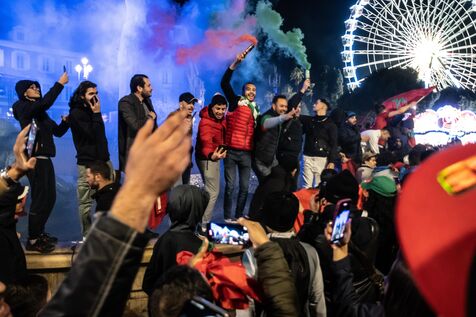 Moroccan fans gathered at Place Massena in Nice to celebrate their country's historic qualification for the semi-finals of the World Cup in Qatar.