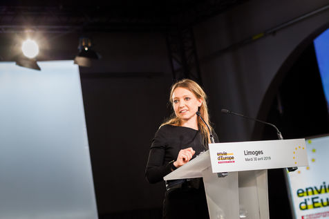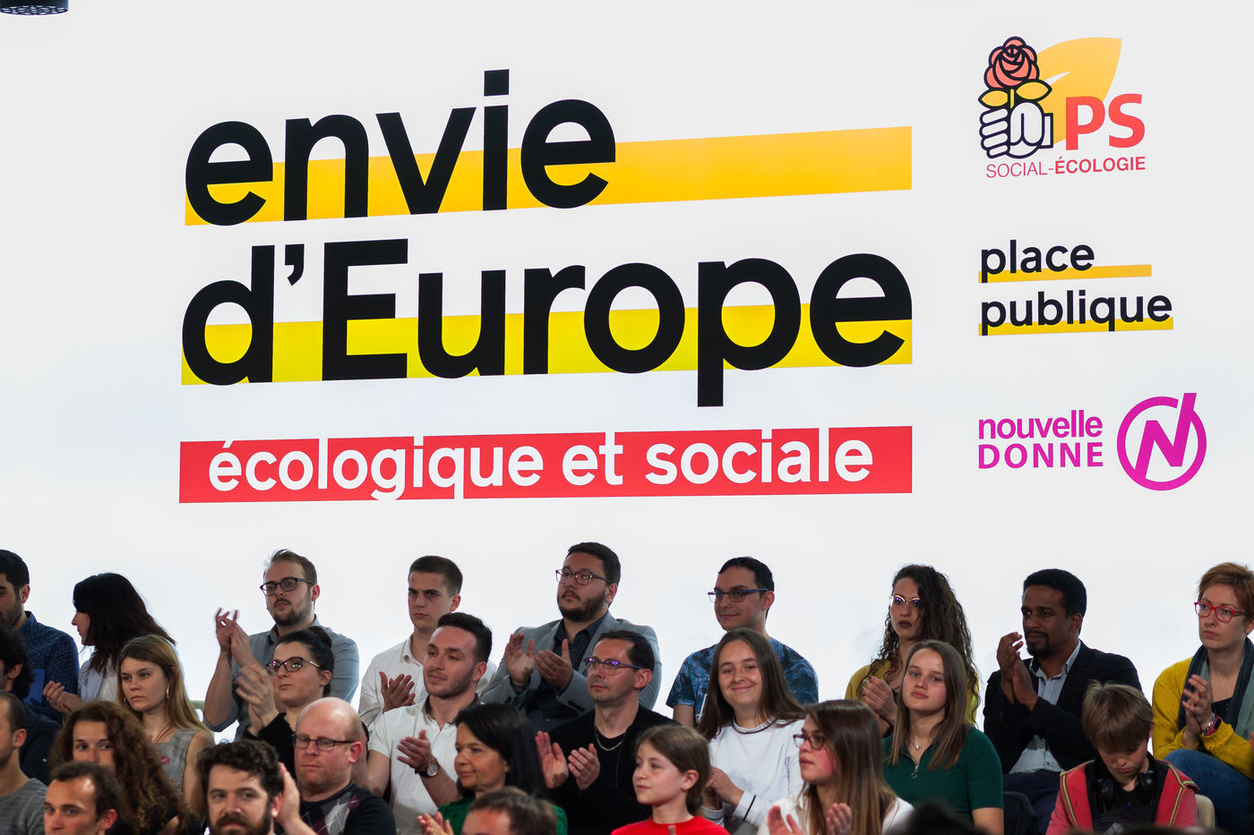 Meeting de Raphaël Glucksmann représentant la liste "Envie d'Europe" du Parti Socialiste, Place Publique et Nouvelle Donne pour les élections européennes au Palais des Expositions de Limoges en Haute-Vienne, le 30 avril 2019 à Limoges, France.