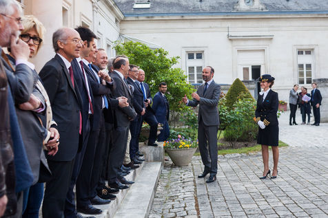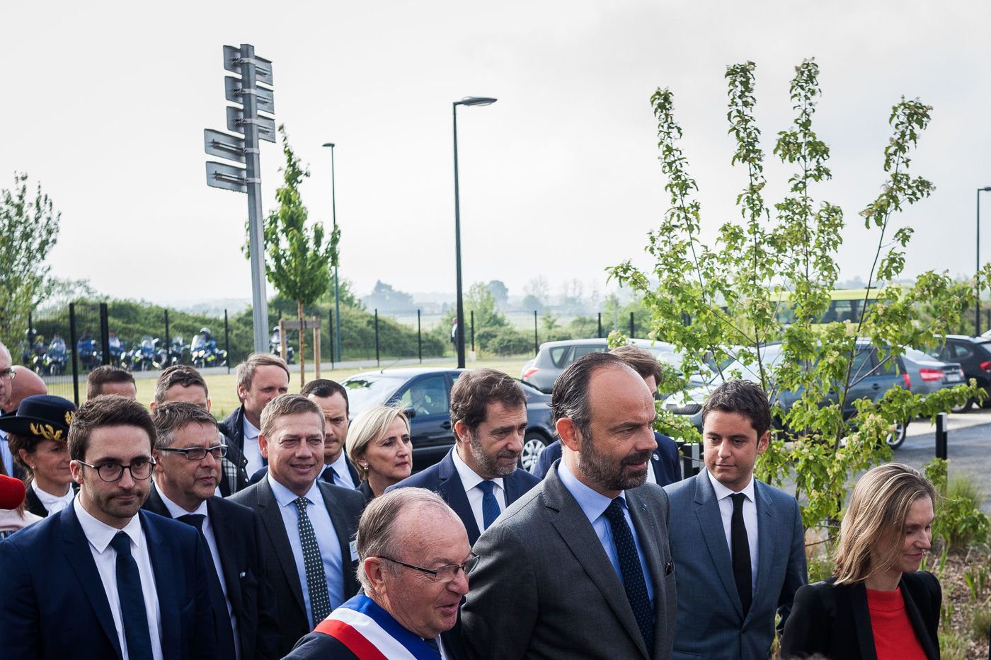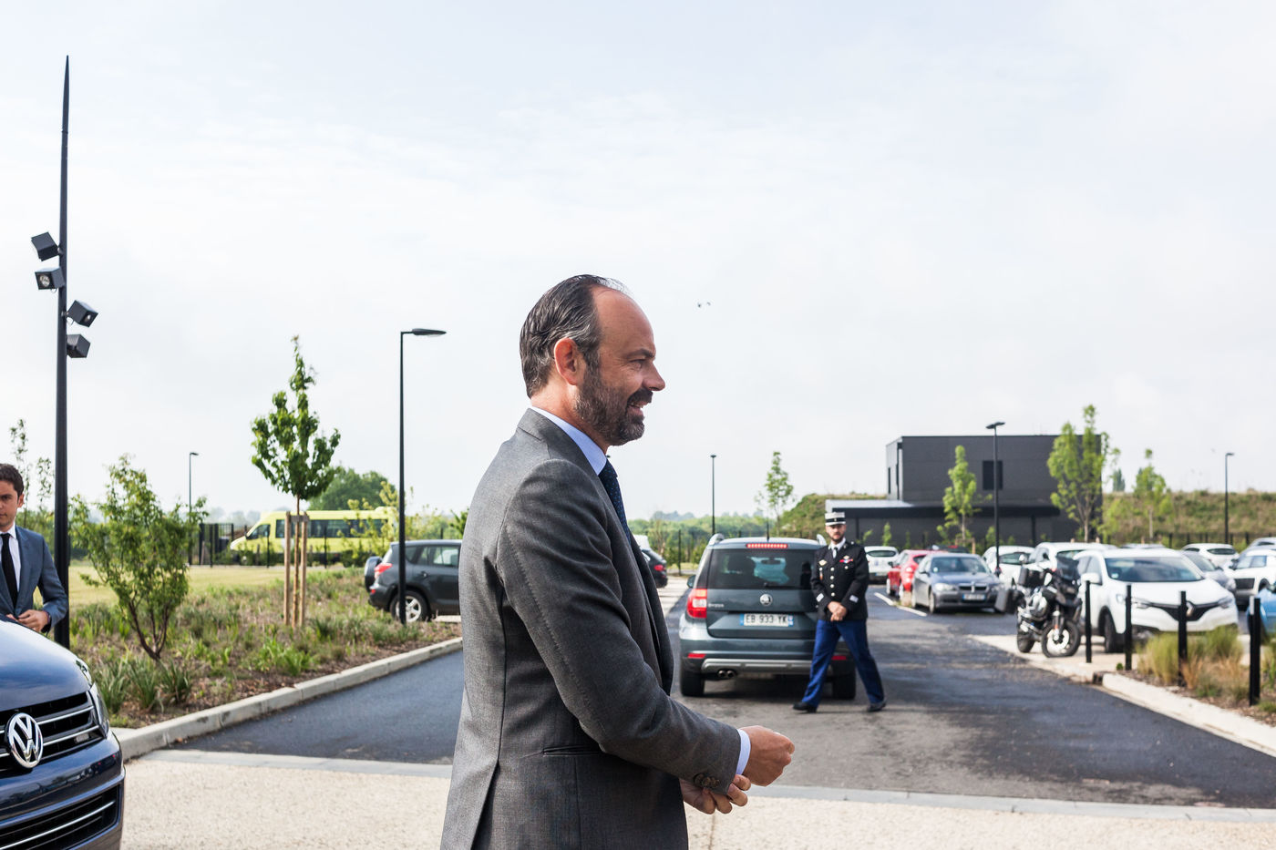 Le Premier ministre Edouard Philippe arrive à la Préfecture de la Charente pour une visite de deux jours dans le département, le 01 mai 2019 a Angouleme, France.