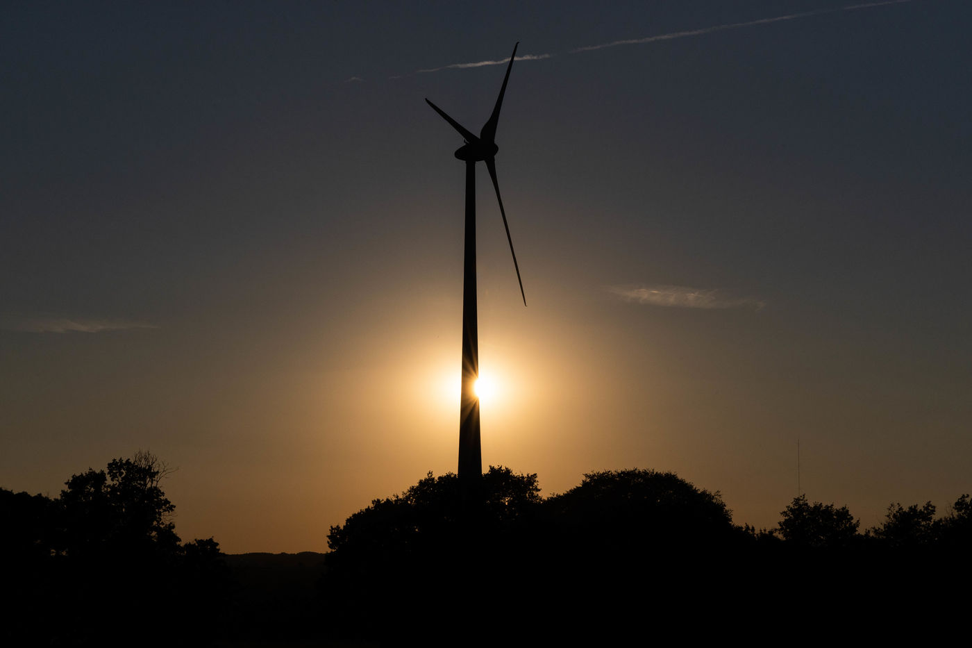 France, Saint-Fraigne, 2021.09.23. Saint-Fraigne wind farm in the Charente, at the end of the day.