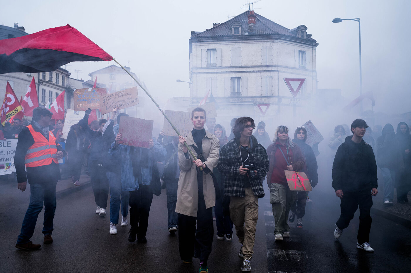 France, Angoulême, 2023.01.31. Second day of demonstrations against the French government and president's plan to raise the legal retirement age from 62 to 64. Nearly 10,000 people marched in the city centre of Angoulême in Charente.