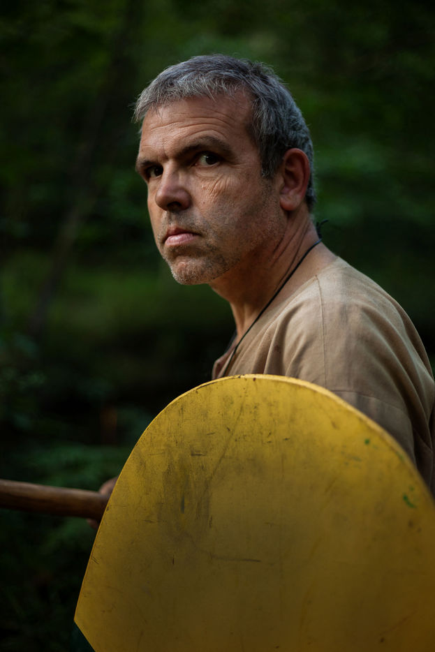 Every year during summer, in Esse, in northern Charente, a gallic village (Coriobona) comes alive for ten days to revive what was Lemovices daily life, a tribe from the 1st century before Christ. Built on 4 hectares, between clearing and underwood, this oppidum (fortified village) of ten buildings recreates architecture as well as furniture and clothing from that age. Gestures and craftsmanship are identically replicated, by inhabitants from this land, a group of fifty history enthusiasts. Bankers, workers or winemakers for a living, they become either blacksmiths, stonecutters, potters, warriors or village leader for Grannos celebrations, divinity of rain and sources. Once in their trousers, they become Oxsos, Alatta, Eporenos or Dumnorix. For ten days and ten night, they think, eat, sleep and act like gallics to exalt their nature.