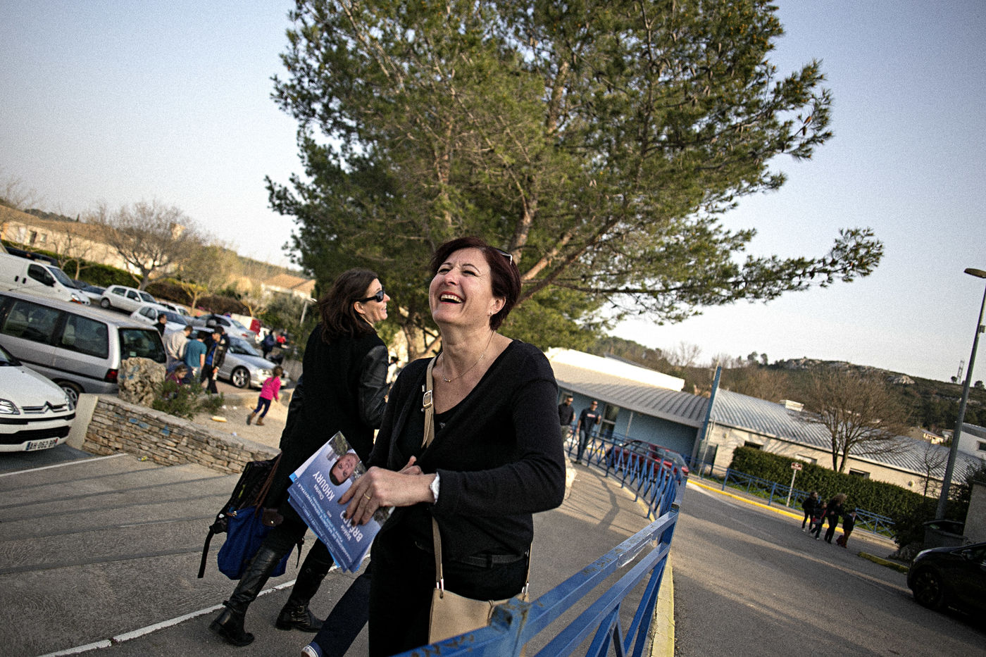 18 mars. Il est 19h00 et Gabrielle Henry, la candidate du binôme socialiste, est déjà là, discrète, à la table de conférence. A Montpellier, le meeting va bientôt commencer. Benoît Hamon, ancien ministre de l'Éducation nationale, André Vézinhet, président sortant du Conseil général de l'Hérault, et Michael Delafosse, candidat PS aux élections départementales du canton de Montpellier-2, entrent sous les vivats des militants. La Maison pour tous Marie-Curie est pleine à craquer. Pour la première fois, la nouvelle loi électorale impose la parité. Dans son discours d'ouverture, le député Christian Assaf le souligne : « Les femmes sont pragmatiques ». Après avoir lu avec application son discours, Gabrielle Henry, au chandail rose socialiste, ne dément pas et confie que « les femmes ont une approche de la politique par les dossiers et non par la stratégie. Elles sont plus concrètes et moins calculatrices. Peut-être qu'en étant une femme, on ne voit pas les mêmes choses. On est plus attentives aux situations ».