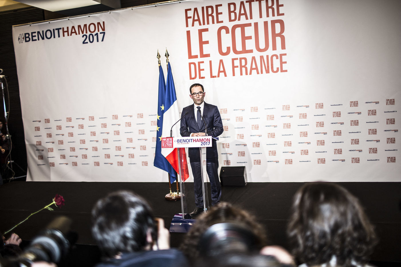 Paris, Primaires de la gauche, discours de victoire de Benoît Hamon à la Mutualité