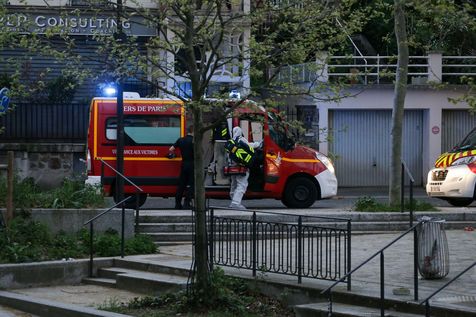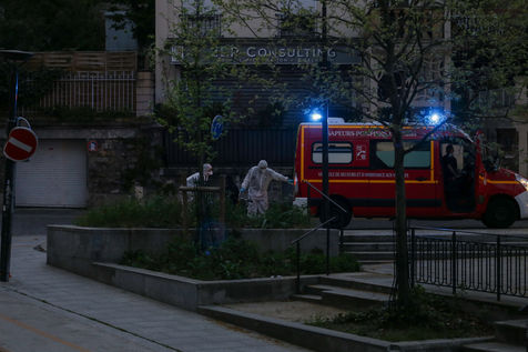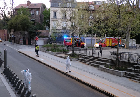 Intervention firefighters in a suspected case of covid-19. Paris , france, 9 april 2020.