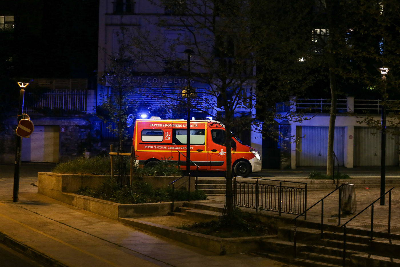 Intérvention des pompiers pour cas suspect de covid-19. Paris , france, Avril 9, 2020.