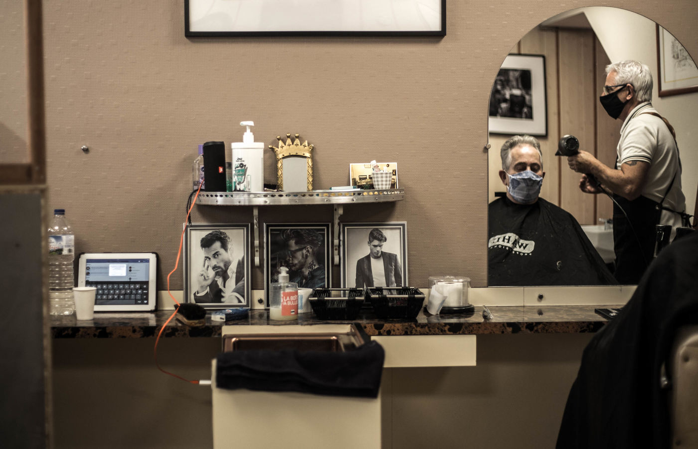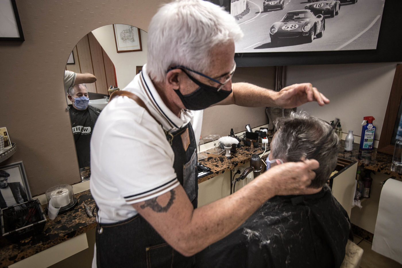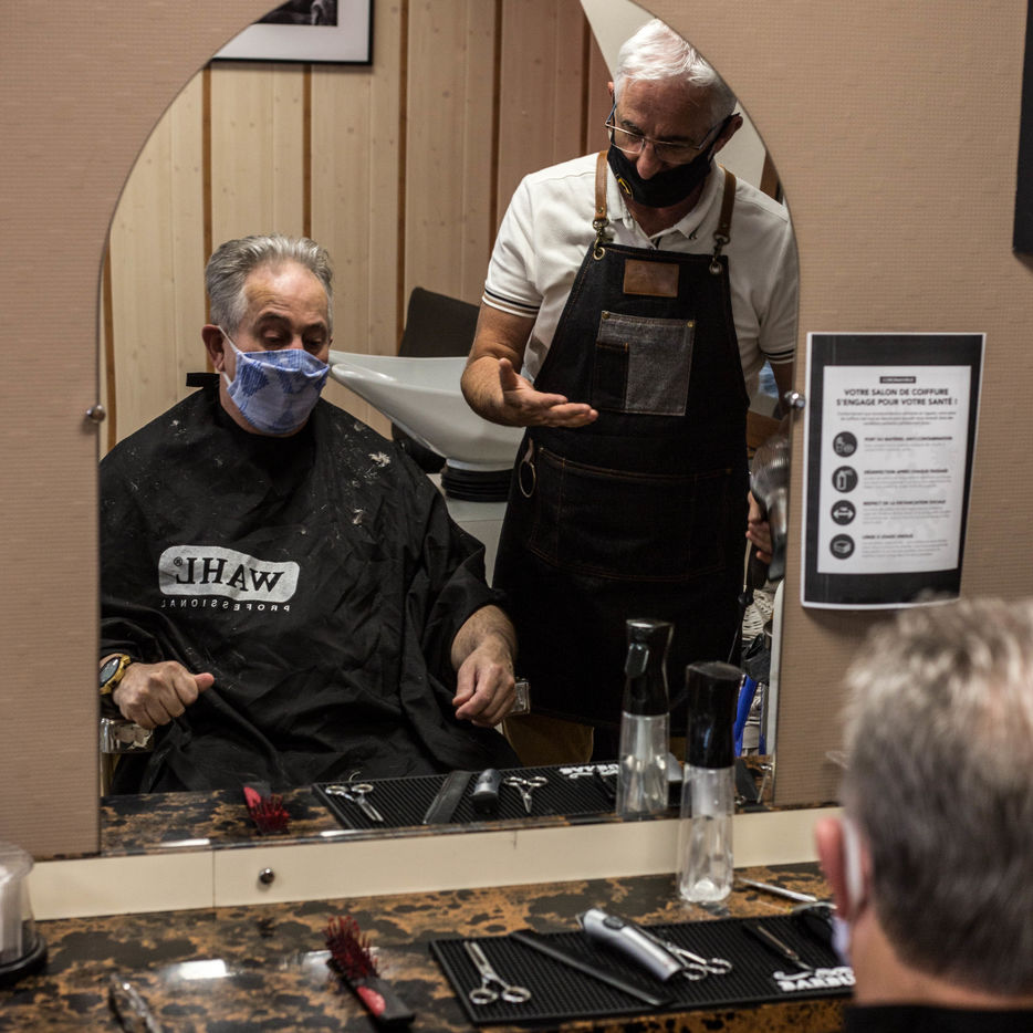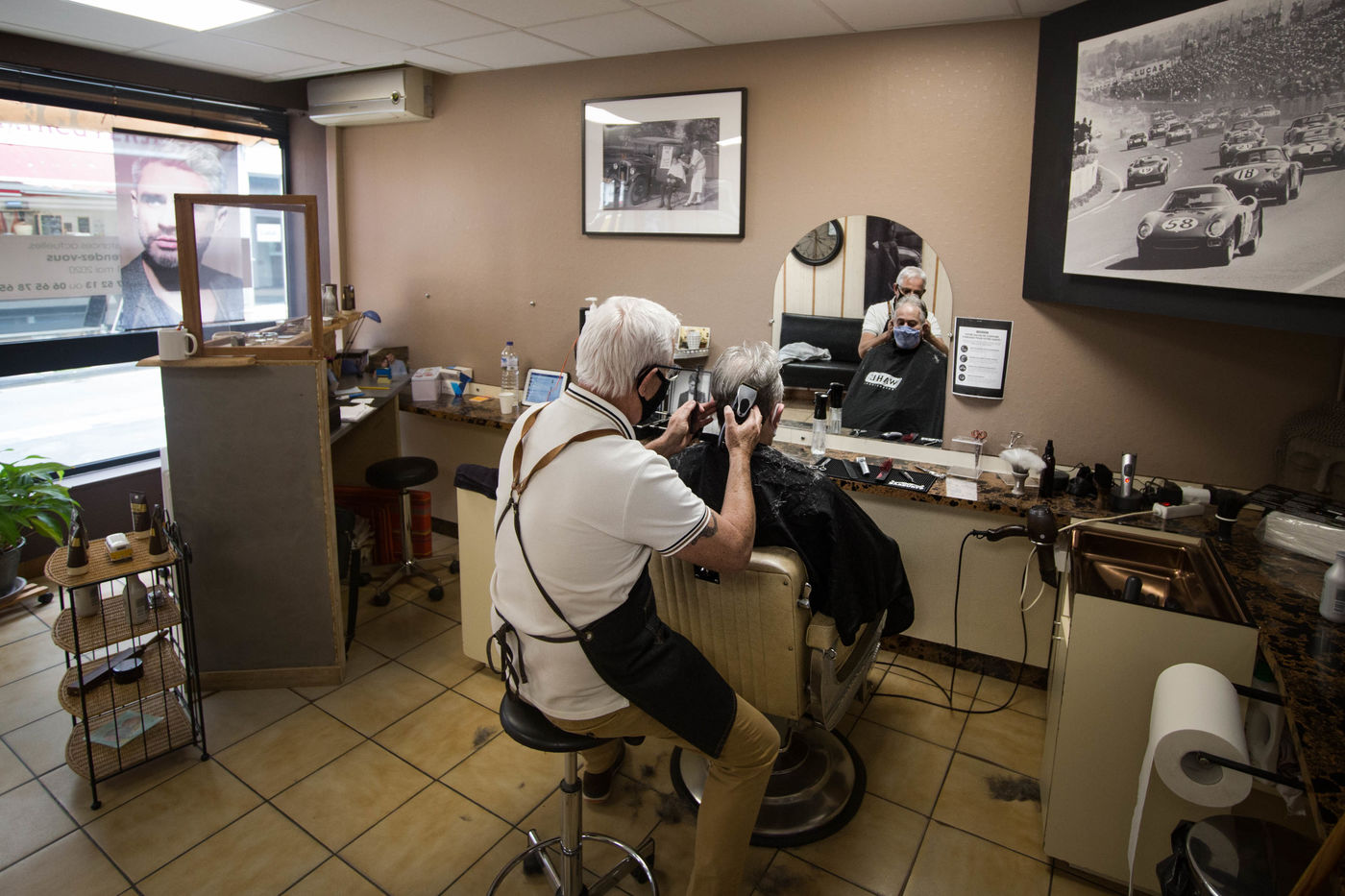 Bruno, coiffeur pour homme dans la petite ville de charente maritime en France à réouvert son salon le 11 Mai 2020. Son salon qui travers le temps s'adapte au précautions d'hygiènes en vigueur.