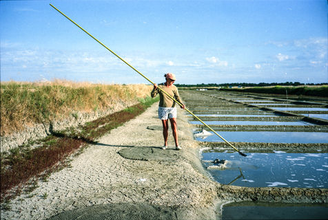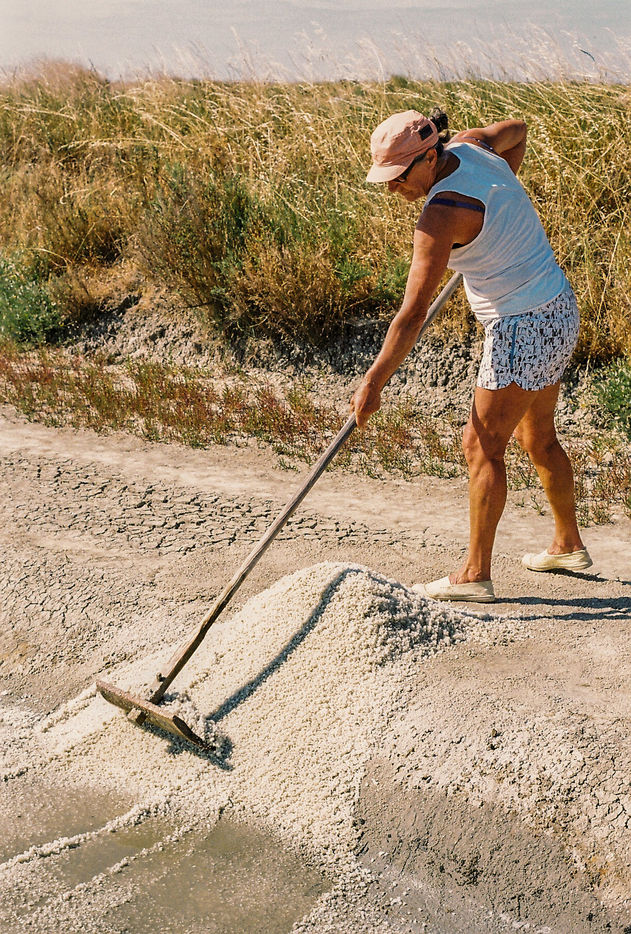Au milieu des marais de Saint clément se trouve un cabane vert pastel isolée. Un tracteur rouge éclatant entre deux carreaux et Valérie seule au milieu de son marais. En funambule cuivré, le simoussi à la mains. Elle récolte le gros sel. C'est le début de la saison la chaleur attendue ne rendra de la fleur de sel que dans sept à dix jours. Mais l'été s'annonce orageux et donc peu productif. Les anciens l'ont dit ; et 2020 ne leurs donnera pas tord. C'est ainsi, que fonctionne la vie de saunier. Sur le fil de l'eau et du soleil. En alchimistes funambules, entremetteurs respectueux au rythme des saisons, à l'écoute de l'écosystème qui les entour.