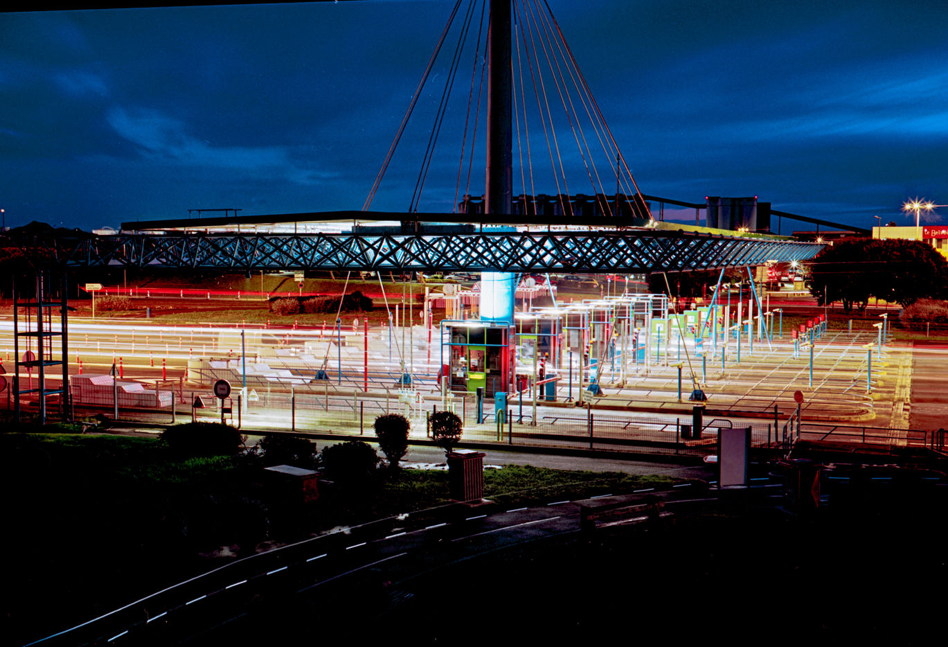 Automobiles et poid lourds, un flux incessant des machines traversant les abords de la ville. La lumière comme la marque indélébile de notre impact sur l'environnement. Les structures restent elles ici... Une marée rouge et blanche que l'on a du mal à voir éteinte.