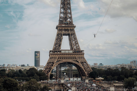 Chaillot experience le funambule Nathan Paulin traverse la Seine sur un fil allant de la Tour Eiffel au Trocadéro