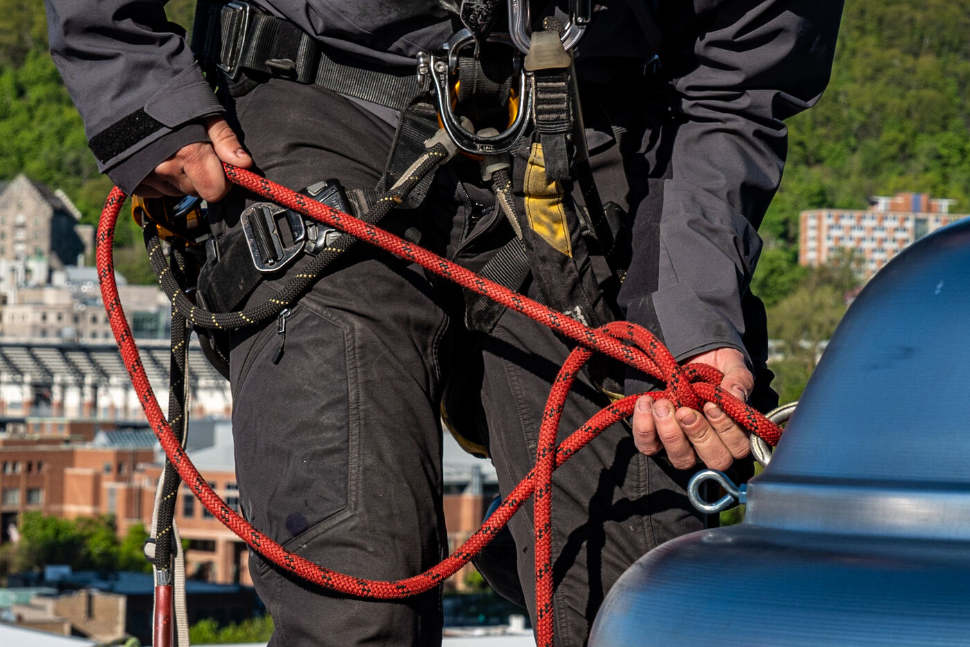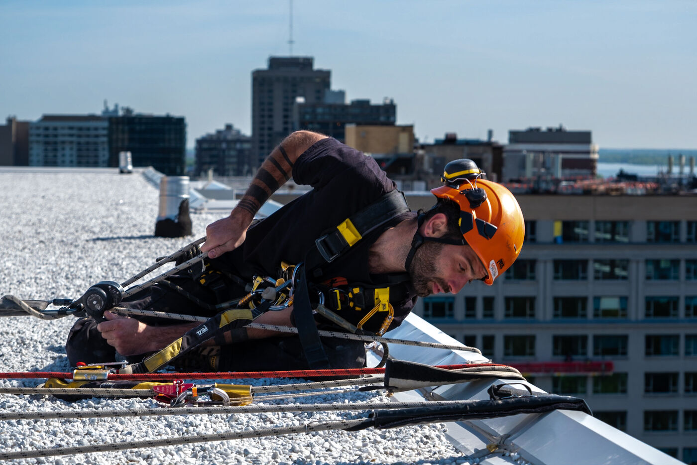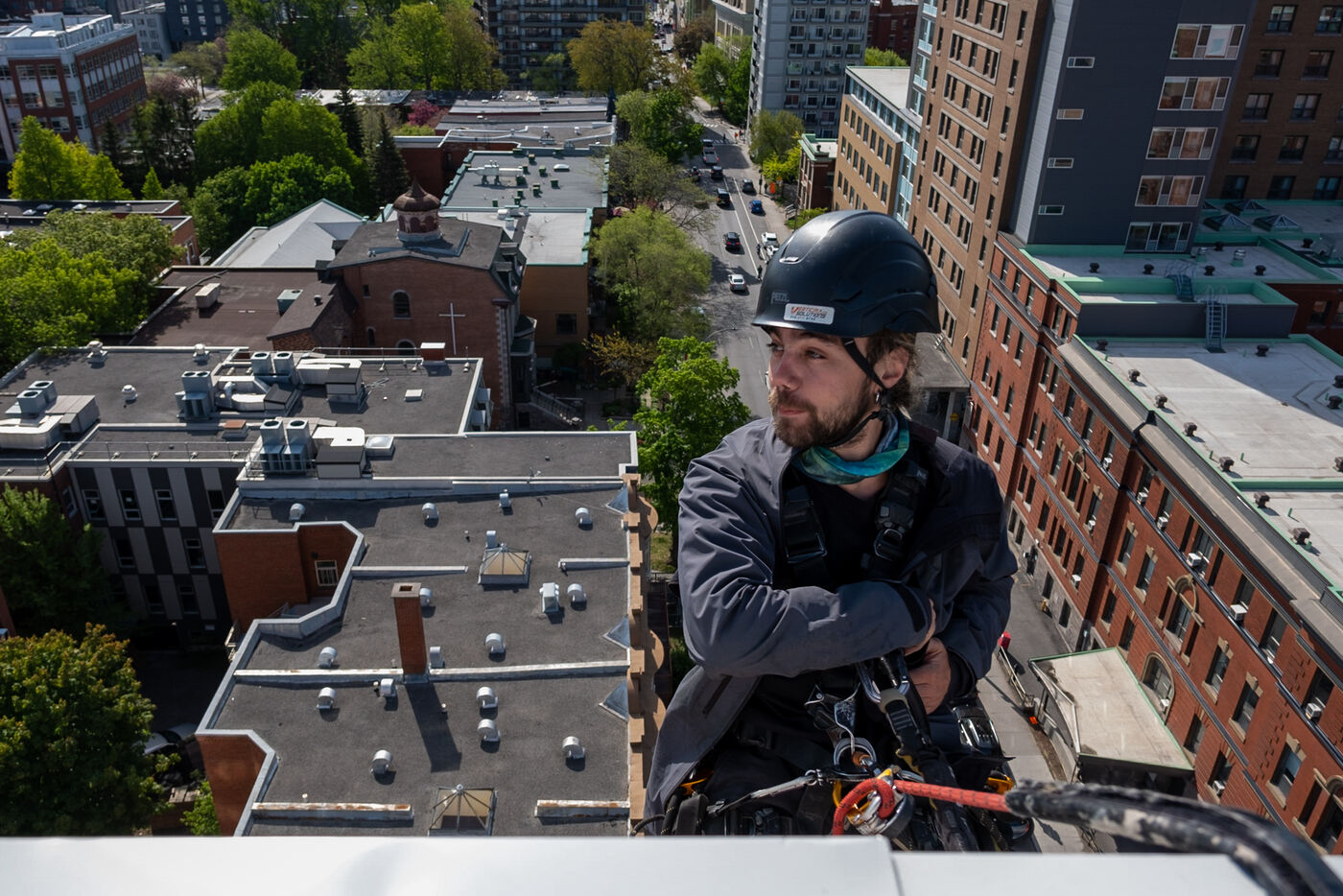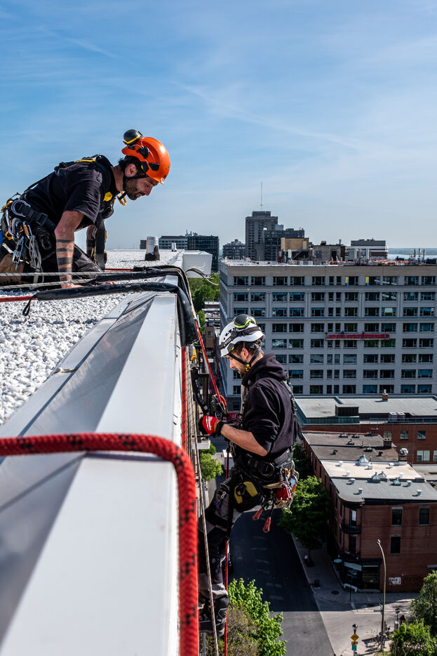 (series in progress) At a time when many of our jobs are feared to be supplanted by technology, there are still areas where human expertise remains highly sought-after. Among these, rope access technicians, still not very widespread in Quebec, occupy a prominent place.