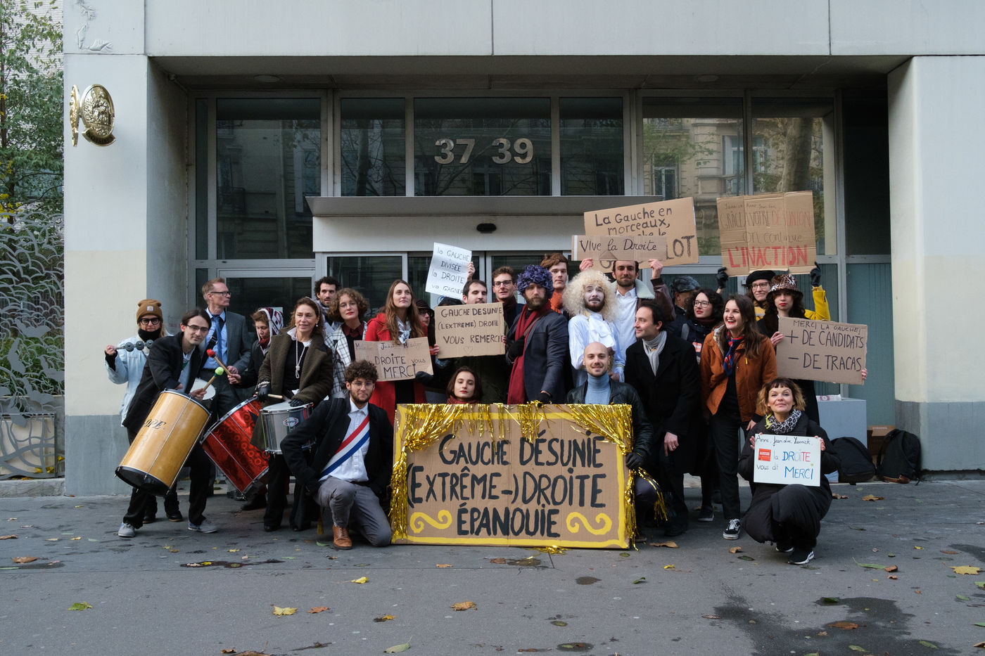 The Popular Primary is a movement that tries to push the candidates of the different left-wing and ecological parties to unite behind a common program for the 2022 presidential election. On Sunday, November 28, 2021, members of the permanent team and volunteers gathered in a parody demonstration to protest against the disunity of left-wing and ecological parties, in front of the campaign offices of Jean-Luc Mélanchon (LFI), Anne Hidalgo (PS) and Yannick Jadot (EELV).