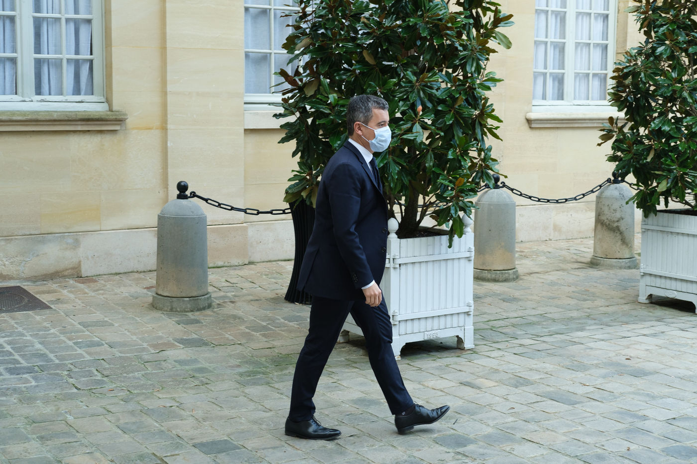 Photos of Gérald Darmanin, Minister of the Interior, and Gabriel ATTAL, Secretary of State to the Prime Minister, Government Spokesman, at the entrance and exit of the meeting.