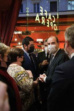 Mardi 18 janvier 2022, Jean Castex, Premier ministre s'est rendu accompagné d'Élisabeth Borne et de Jean-Baptiste Lemoyne dans un restaurant à Paris pour faire le point avec les représentants du secteur de l'Hôtellerie-Cafés-Restauration (HCR) des conséquences de la cinquième vague de covid-19 sur leurs activités. Le souhait du Gouvernement est de réaffirmer son engagement à leurs côtés et de présenter de nouvelles mesures de soutien au secteur. Il a aussi été question de l'avancement des négociations entre les partenaires sociaux de la branche HCR sur l'attractivité des métiers, les conditions de travail et les salaires.