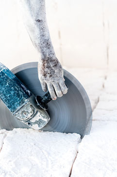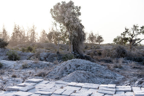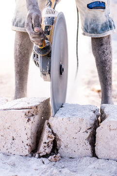 Cut from the ground in a thick white smoke, the bricks, made of naturally compacted coral, are used to build all the houses in the region.