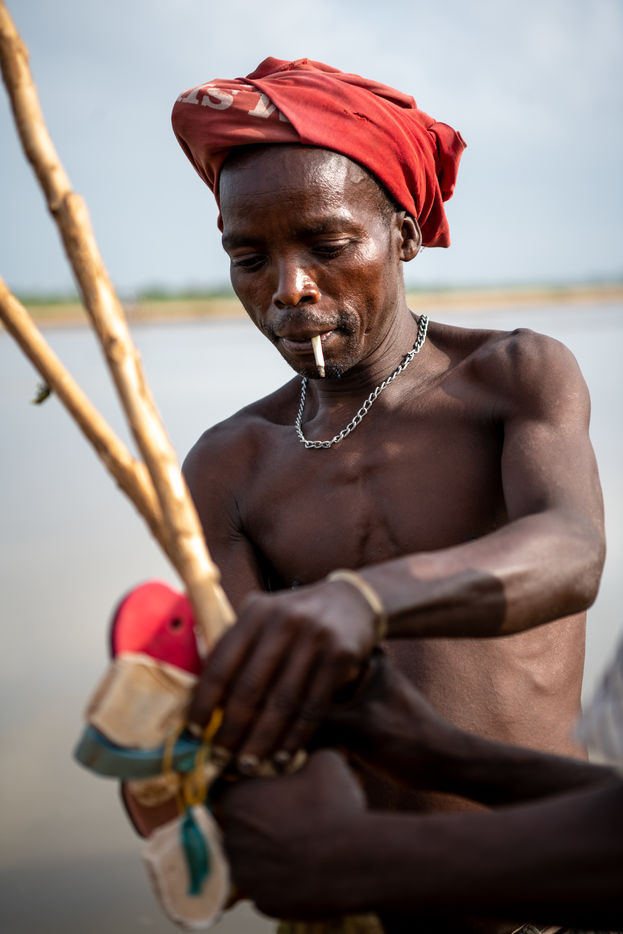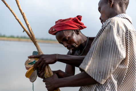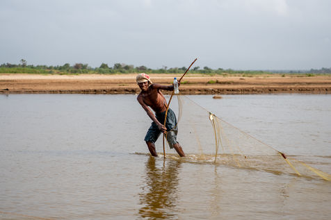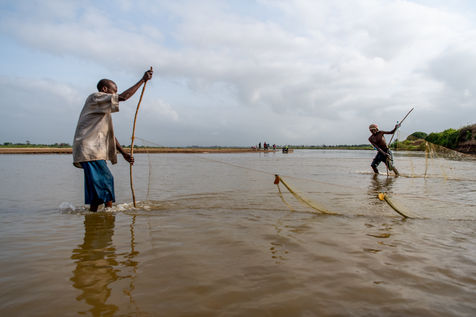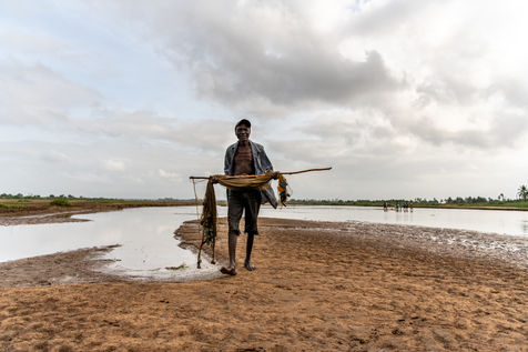 With the droughts induced by climate change, the water in the river is drying up and fish are becoming scarcer. The fishermen of the village have to convert to agriculture or move to the city to find new economic opportunities in construction.