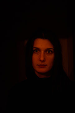 Portrait of Olympe de G., feminist author and director known for writing 'Jouir est un sport de combat' and directing the feminist pornographic film 'Une dernière fois' with Brigitte Lahaie.