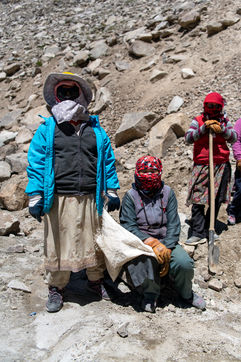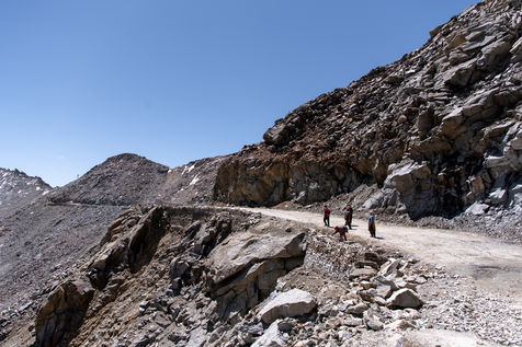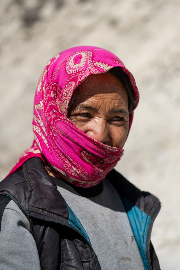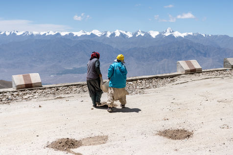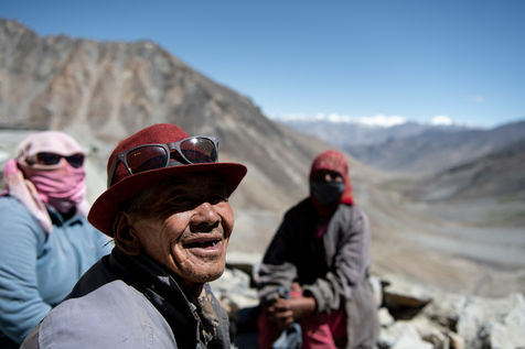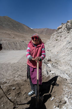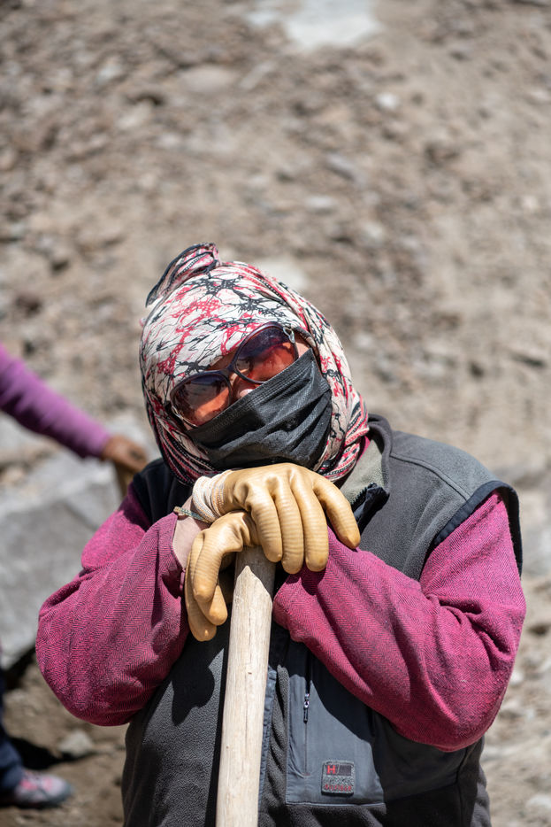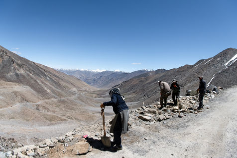 Every morning, a truck picks up the workers of the Border Road Organisation and drops them off at altitudes of over 5500 meters. With shovel in hand and a cloth bag for a wheelbarrow, men and women dig the mountain, clear the road of fallen rocks and fill in the ruts. At this altitude, where oxygen is scarce, breathing is difficult and every effort is painful.