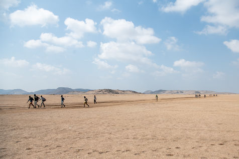 Due to the increase in Coast Guard interceptions along the coastline, smugglers are dropping migrants farther and farther away, sometimes more than 70 kilometers from Obock, the first city. They then have to walk across the desert without food or water. The lack of paved roads and the violent wind that sweeps the sand, erasing and shaping new tracks every day, makes orientation in the desert almost impossible for these migrants. Some go in the opposite direction, into the deep desert that goes to the Eritrean border, drastically reducing their chances of survival.