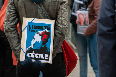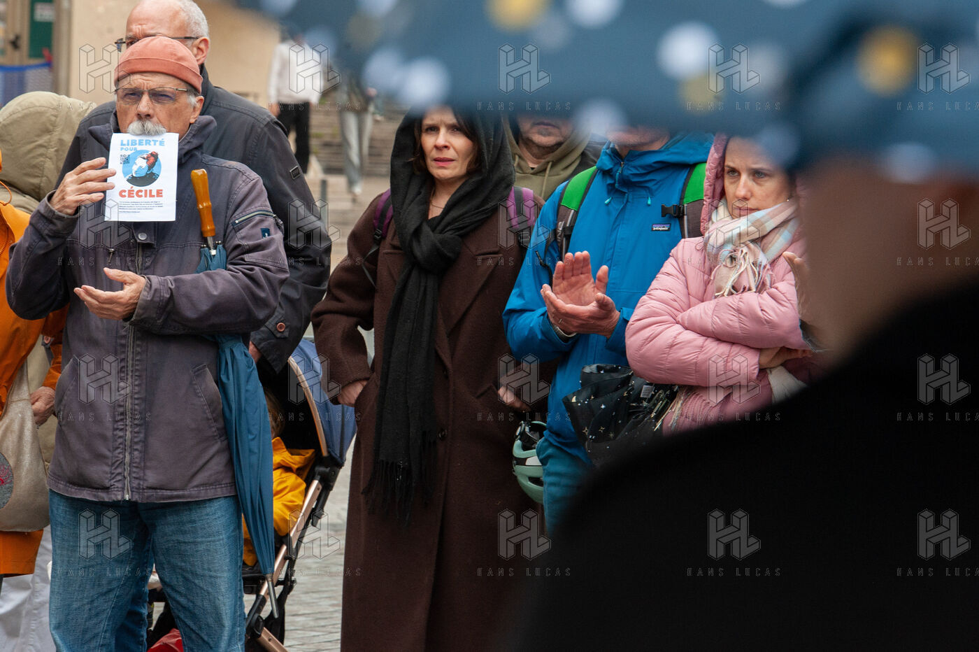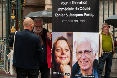 In Lyon, in the Rhône region of France, on May 7, 2025, hundreds of people gather to support two French hostages, Cécile Kohler and Jacques Paris, who have been detained in Iran for three years.