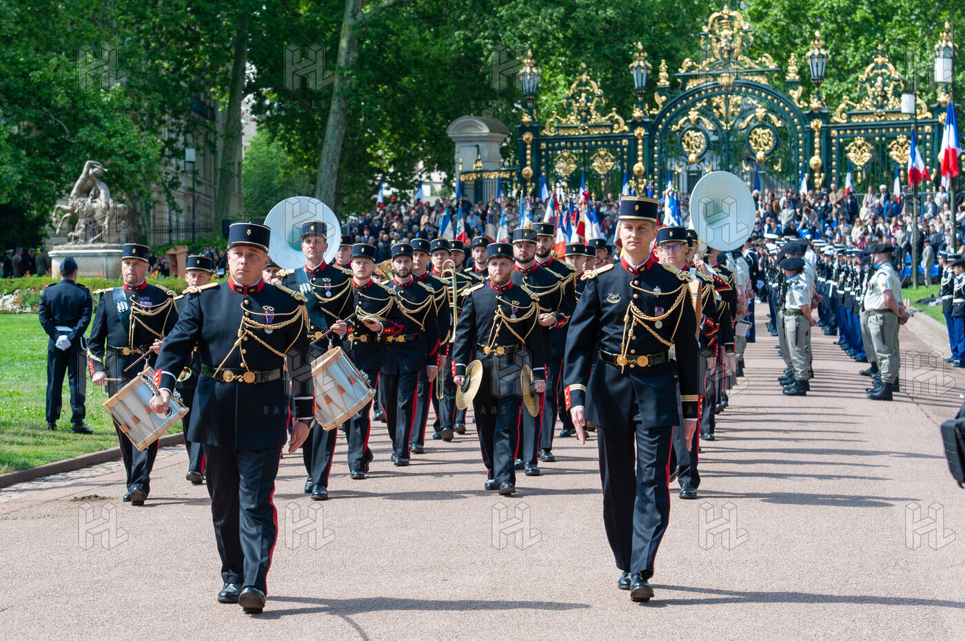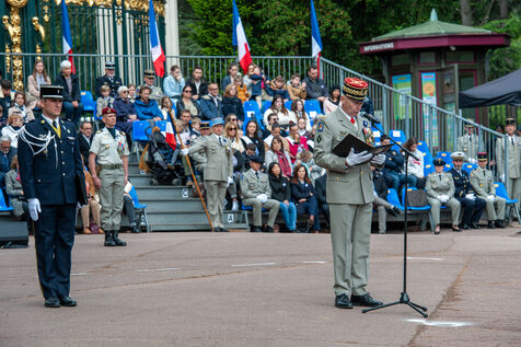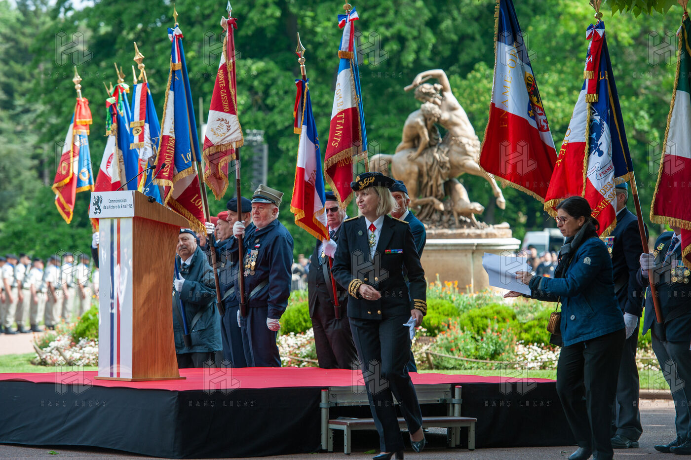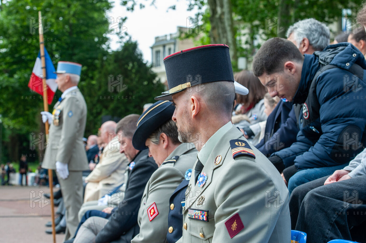 À Lyon, dans le Rhône, en France, le 8 mai 2025, des centaines de personnes se rassemblent en commémoration du 8 mai 1945. Reportage vécue à travers le point de vue du chef de corps Fabien Striffling donnants les ordres aux formations présentes. Racontant le déroulé de la cérémonie.
