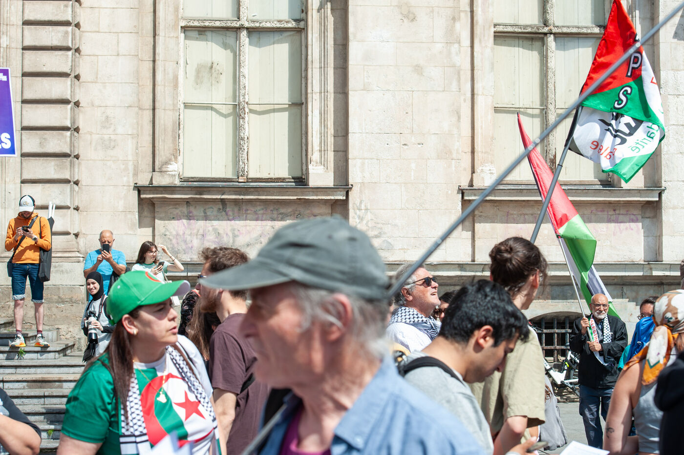 In Lyon, Rhône, France, on May 11, 2025, a rally was organized against Islamophobia. A reportage of 25 images experienced through Ibrahim, a veteran of the Algerian War, who was holding the Palestinian flag. He has been protesting every Saturday for a year and a half in support of Palestine. For him, the situation of the Palestinians is similar to that of the Algerians at the time.