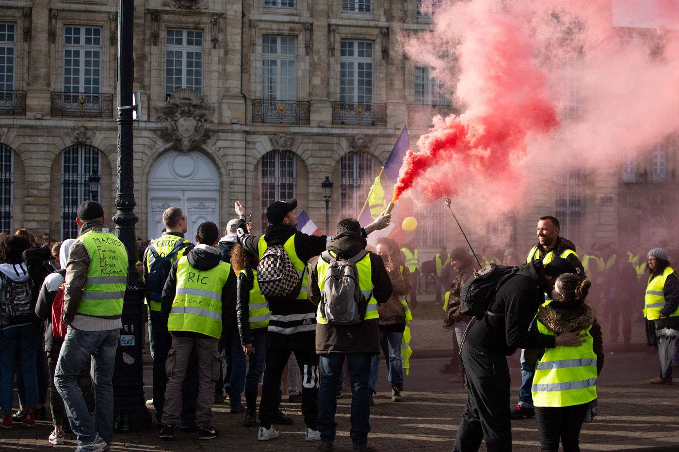 Acte X des gilets jaunes, le 19 janvier 2019, à Bordeaux. Vers 16h30, des heurts ont éclaté place de l'Hôtel de Ville.