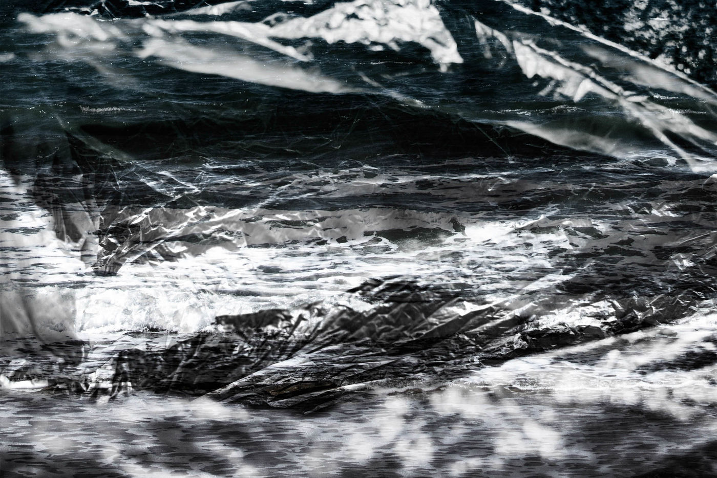 Plastic ocean est un projet sur la pollution des océans. Il se divise en plusieurs séries. Celle ci représente des collages de matière plastique sur des photos d'océan.