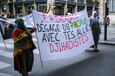 Environ 500 personnes ont manifesté à Bordeaux pour dénoncer les actions menées par Erdogan sur le territoire autonome du Rojava au Nord de la Syrie.