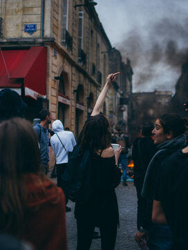 Manifestation sauvage partie de la faculté de la Victoire, occupée depuis quelques jours, à Bordeaux. Des manifestants ont mis le feu à la porte d'entrée de la mairie.