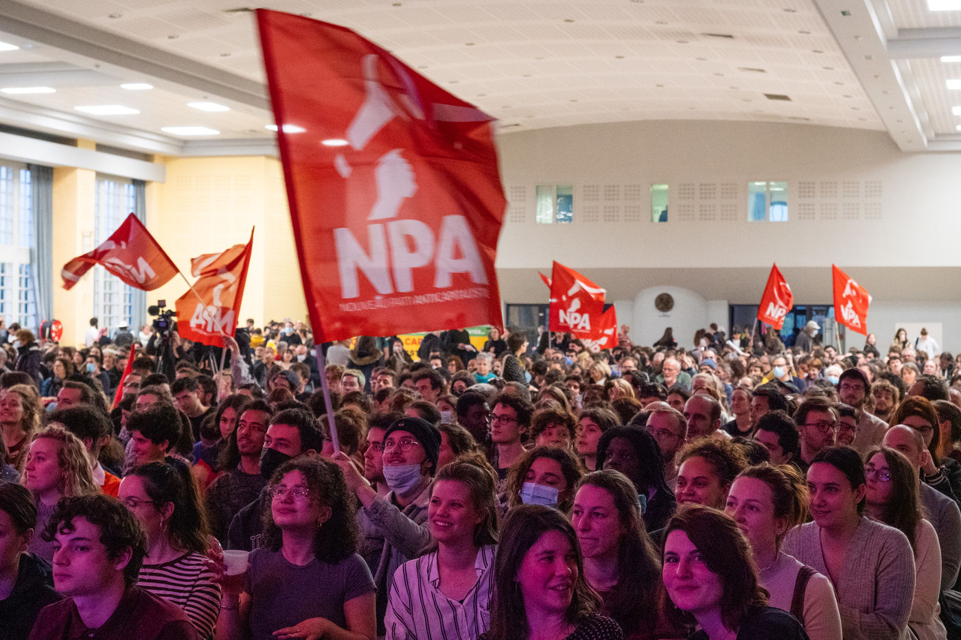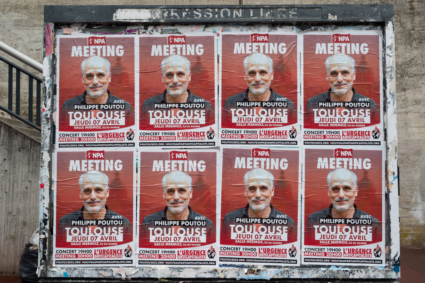 France, Toulouse, Thursday April 7, 2022. Meeting of Philippe Poutou candidate of the NPA in Toulouse. Presidential campaign 2022.
