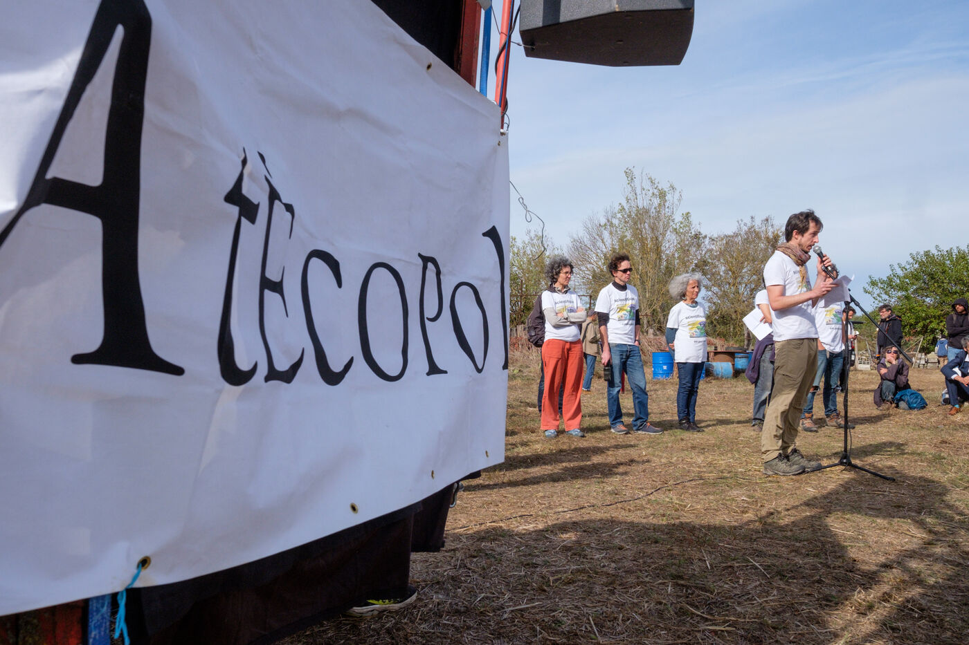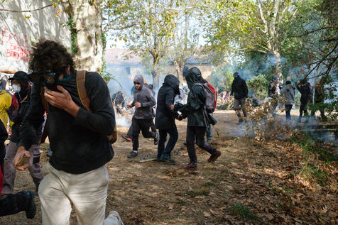 France, Saix (81710), 2023-10-22. Mobilization against the construction of the A69 freeway between Castres and Toulouse organized by several organizations: Extinction Rebellion Toulouse (XR), La Voie est Libre (LVEL), La Déroute des Routes, Attac and the Confédération Paysanne. A weekend of "Ramdam sur le macadam" demonstrations culminated in the occupation of the Crémade farm, now a ZAD. On Sunday, the militants were evicted by the forces of order to prevent any possible installation.