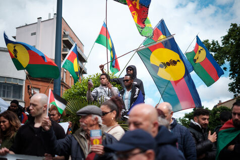 France, Toulouse, 2024-05-18. Demonstration against the colonization of Palestine by the State of Israel and of Kanaky (New Caledonia) by the State of France and in memory of the 76th anniversary of the Nakba and following the violent tensions in Kanaky (New Caledonia) against the thawing of the electoral body.